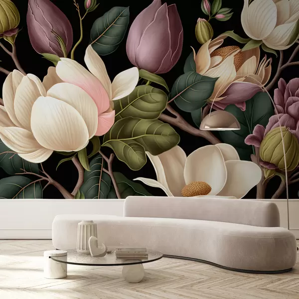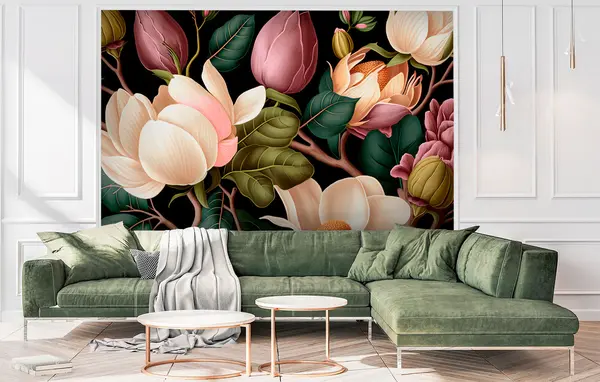 Stenske poslikave Šopek cvetja na drevesni veji na črnem ozadju Št. u74756