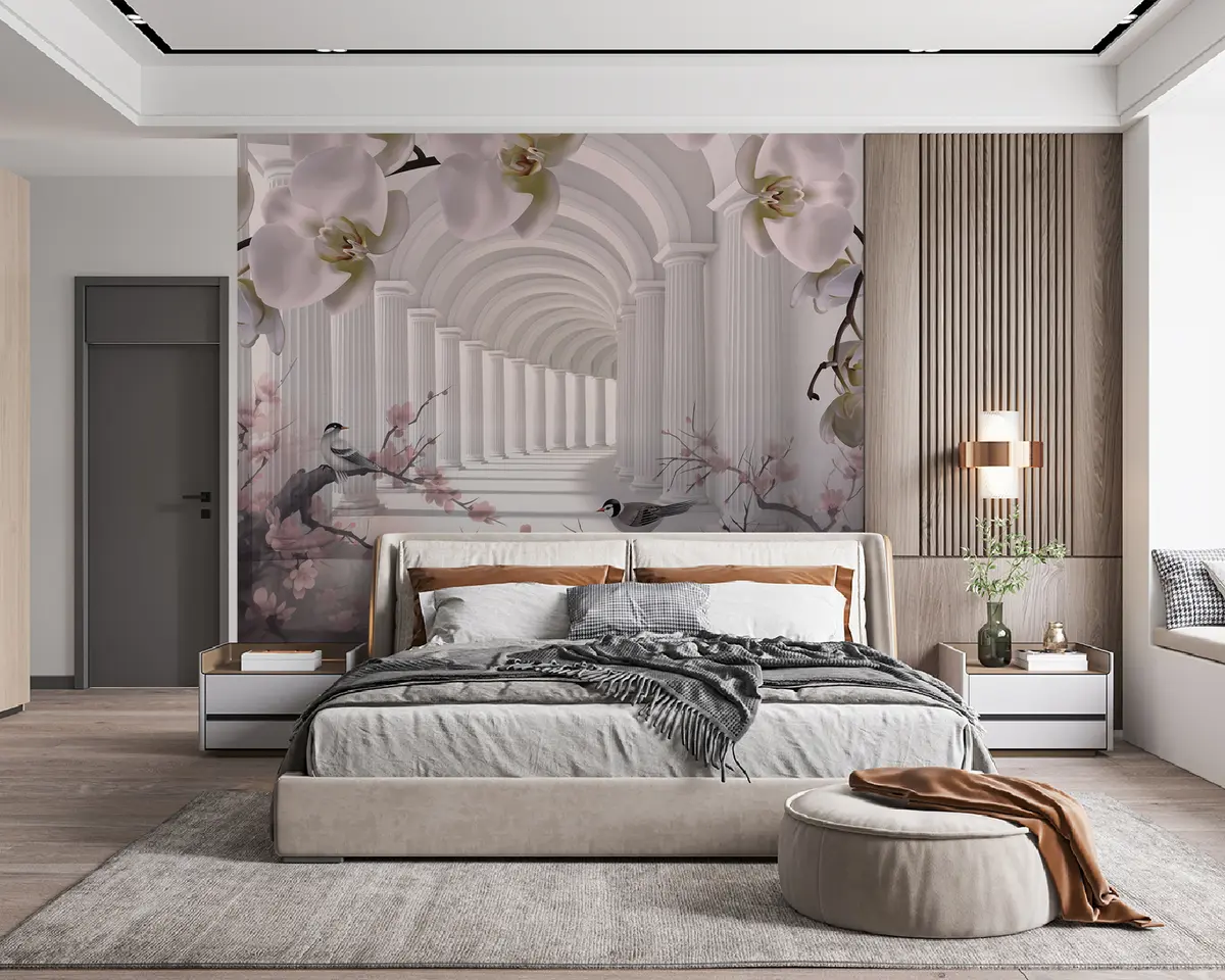 Stenske poslikave Lep predor s pticami in orhidejami Št. u94513