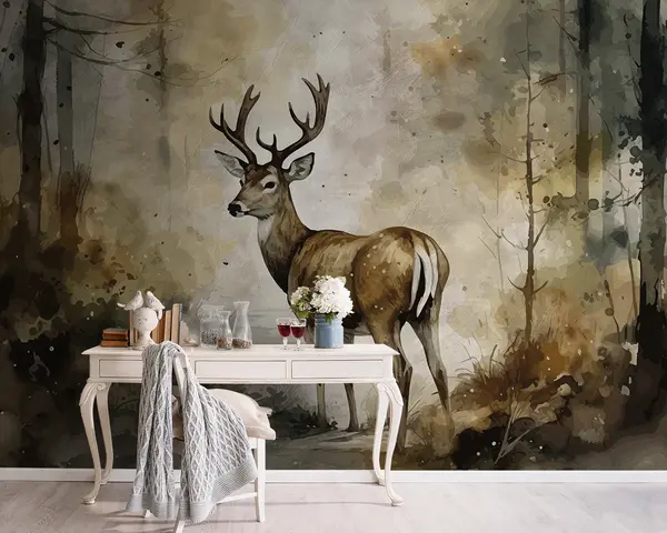 Stenske poslikave Ročno narisan jelen v gozdu Št. u95410
