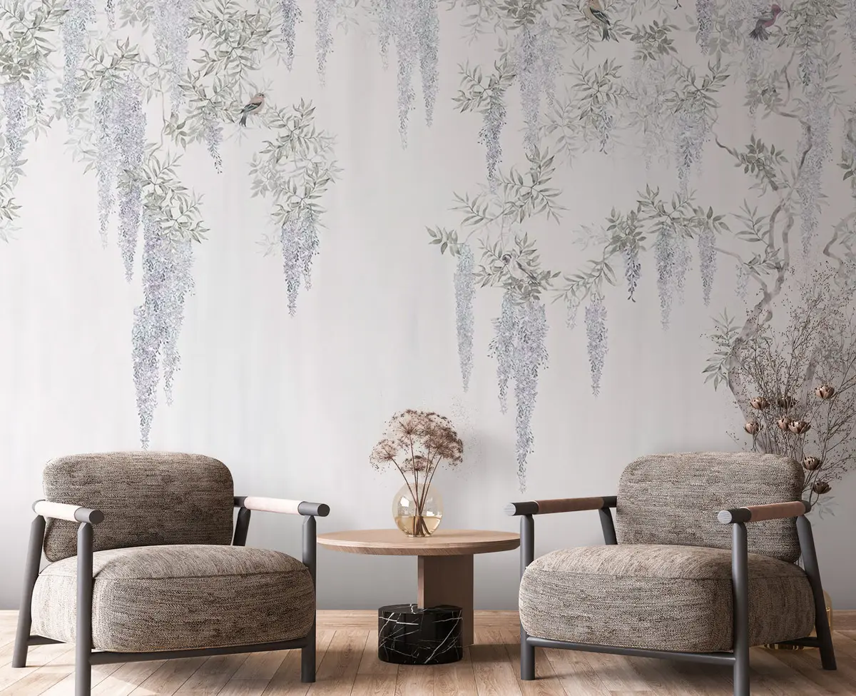 Stenske poslikave Cvetovi glicinije, glicinije, minimalizem, enobarvno, mansarda in japonski slog Št. u96928