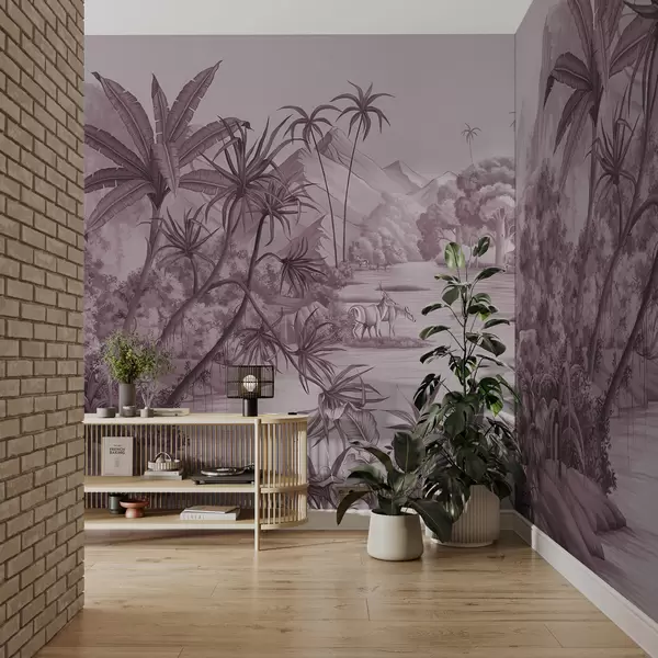 Stenske poslikave Črno-beli tropi v vijoličnih barvah Št. u59040v3