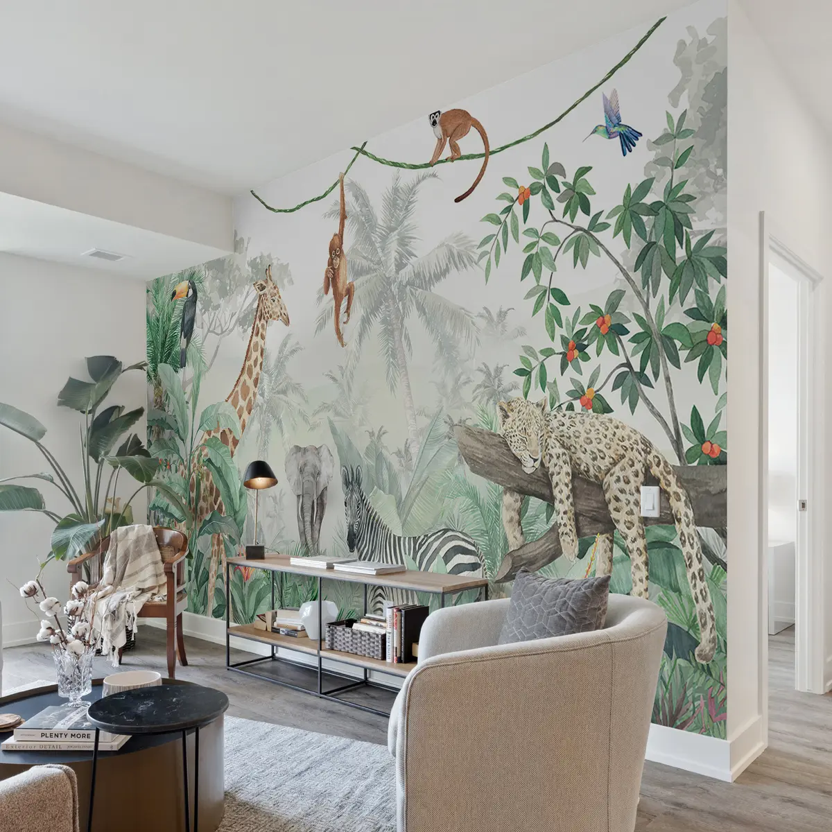 Stenske poslikave Panorama džungle z živalmi Št. u74709