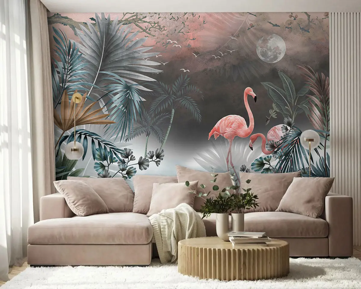 Stenske poslikave Flamingo in rastline Št. u78601