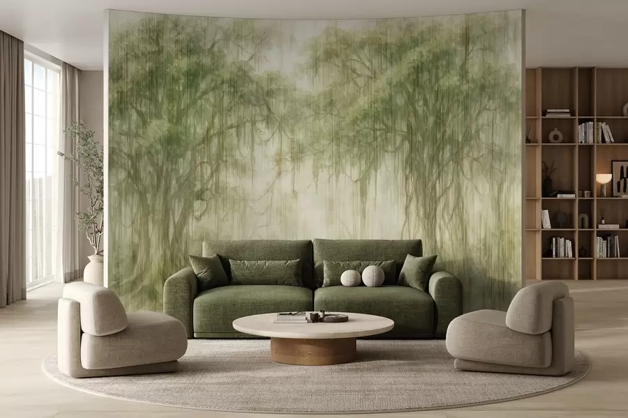Naravne pokrajine, drevesa v gozdu, grunge tekstura, zelene barve
