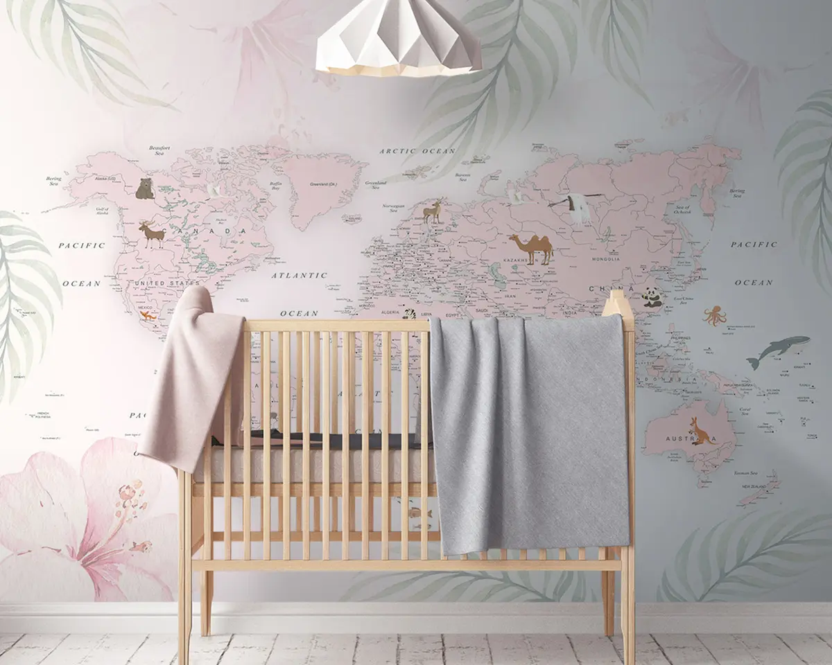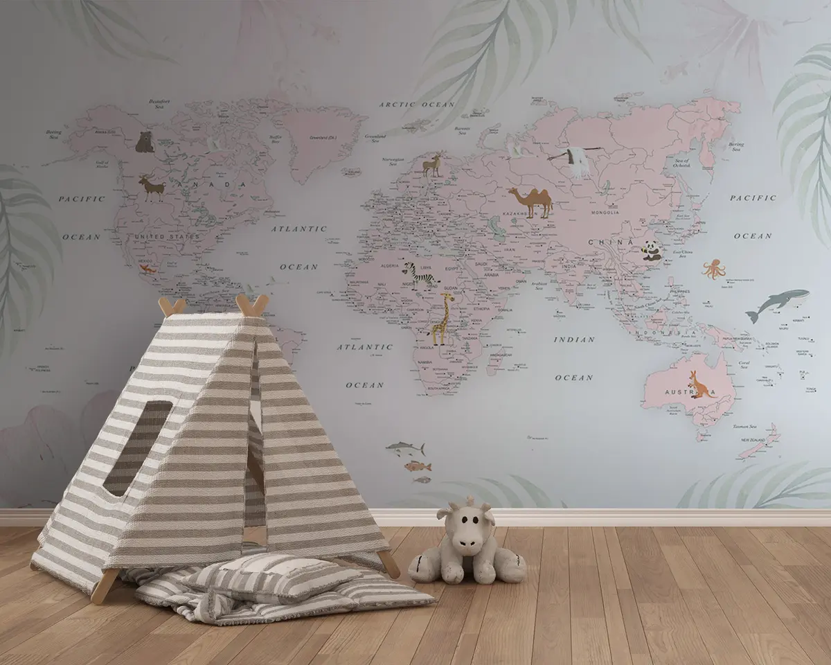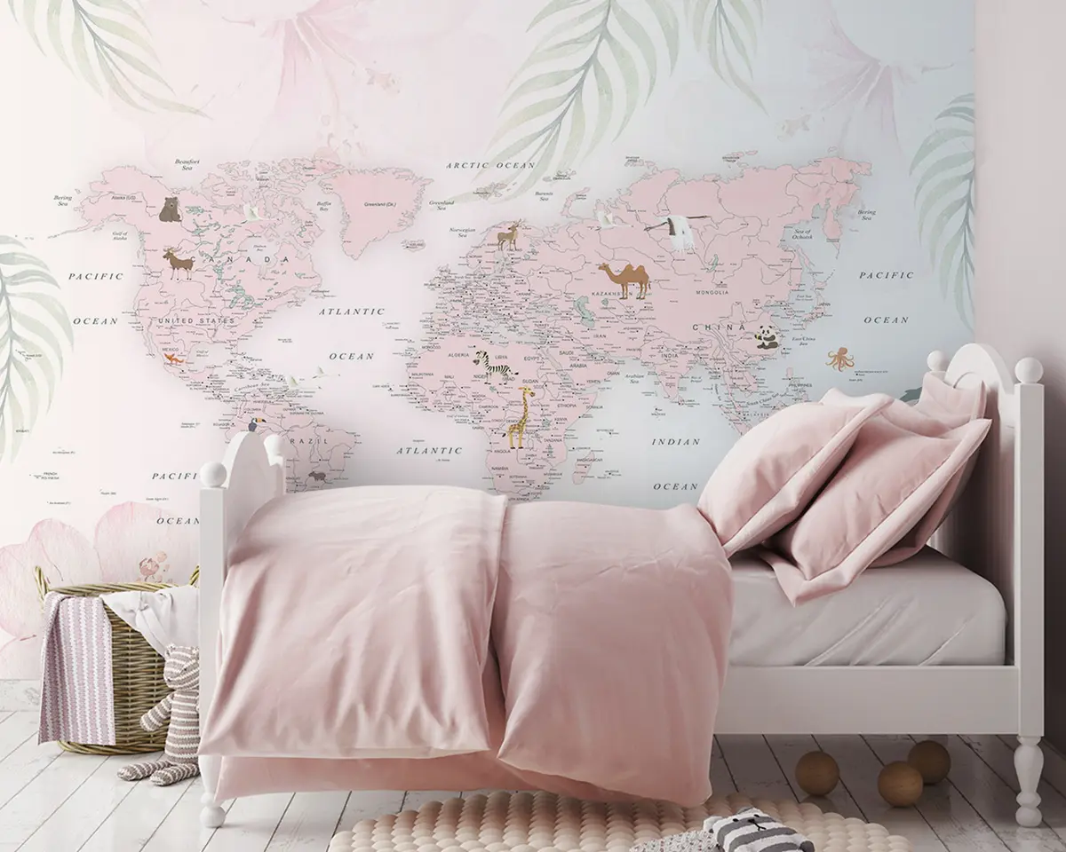 Stenske poslikave Zemljevid sveta za dekleta v rožnatem slogu Št. u79832