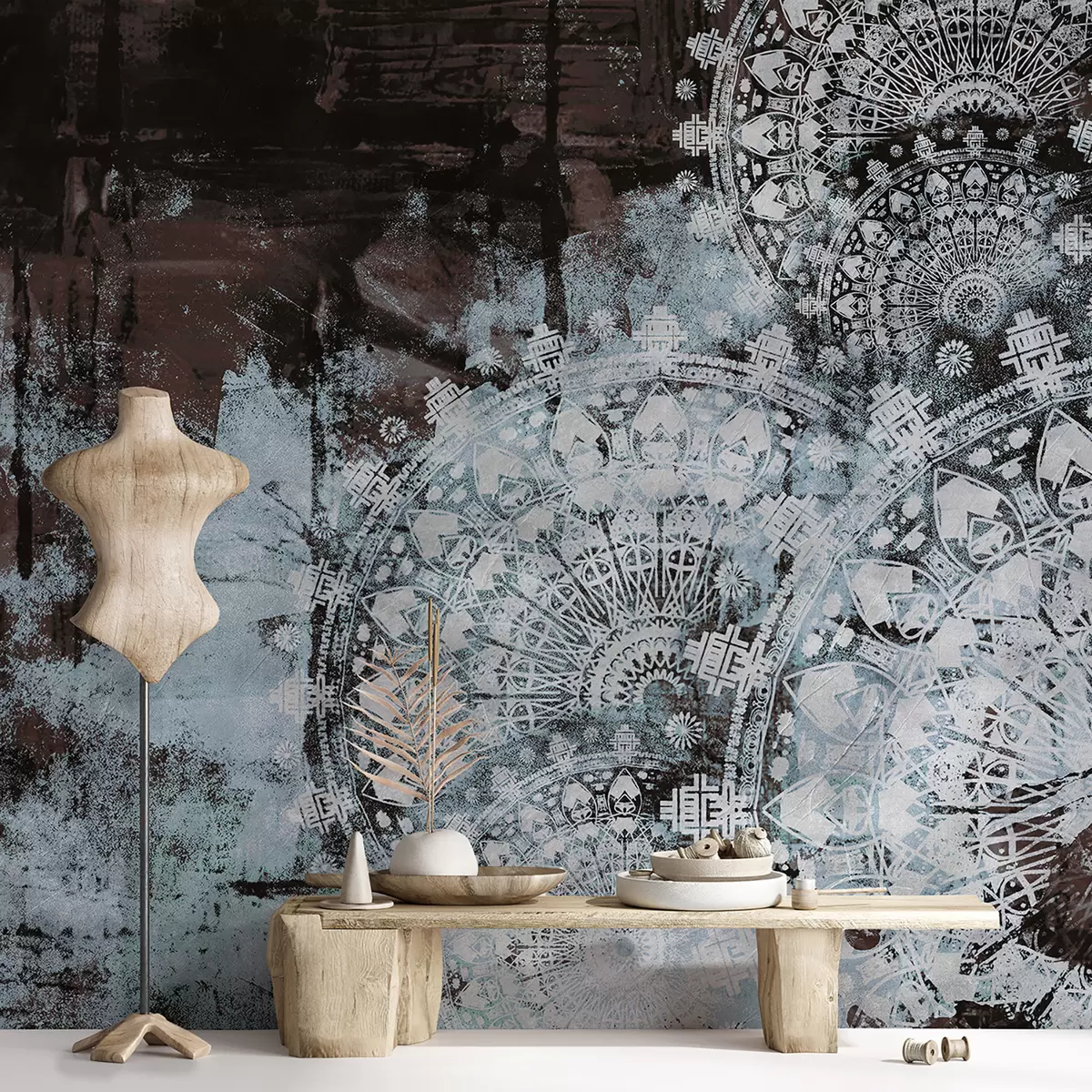 Stenske poslikave Vintage mandala v modrih barvah Št. u93958v1
