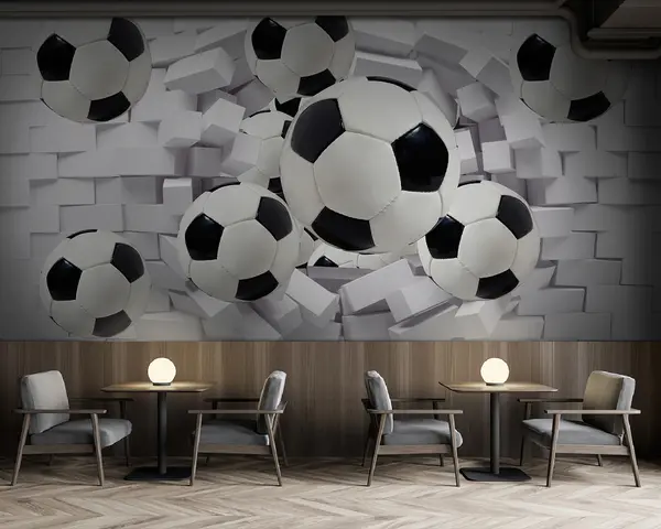 Stenske poslikave Nogometne žoge na ozadju opečnega zidu Št. u94958