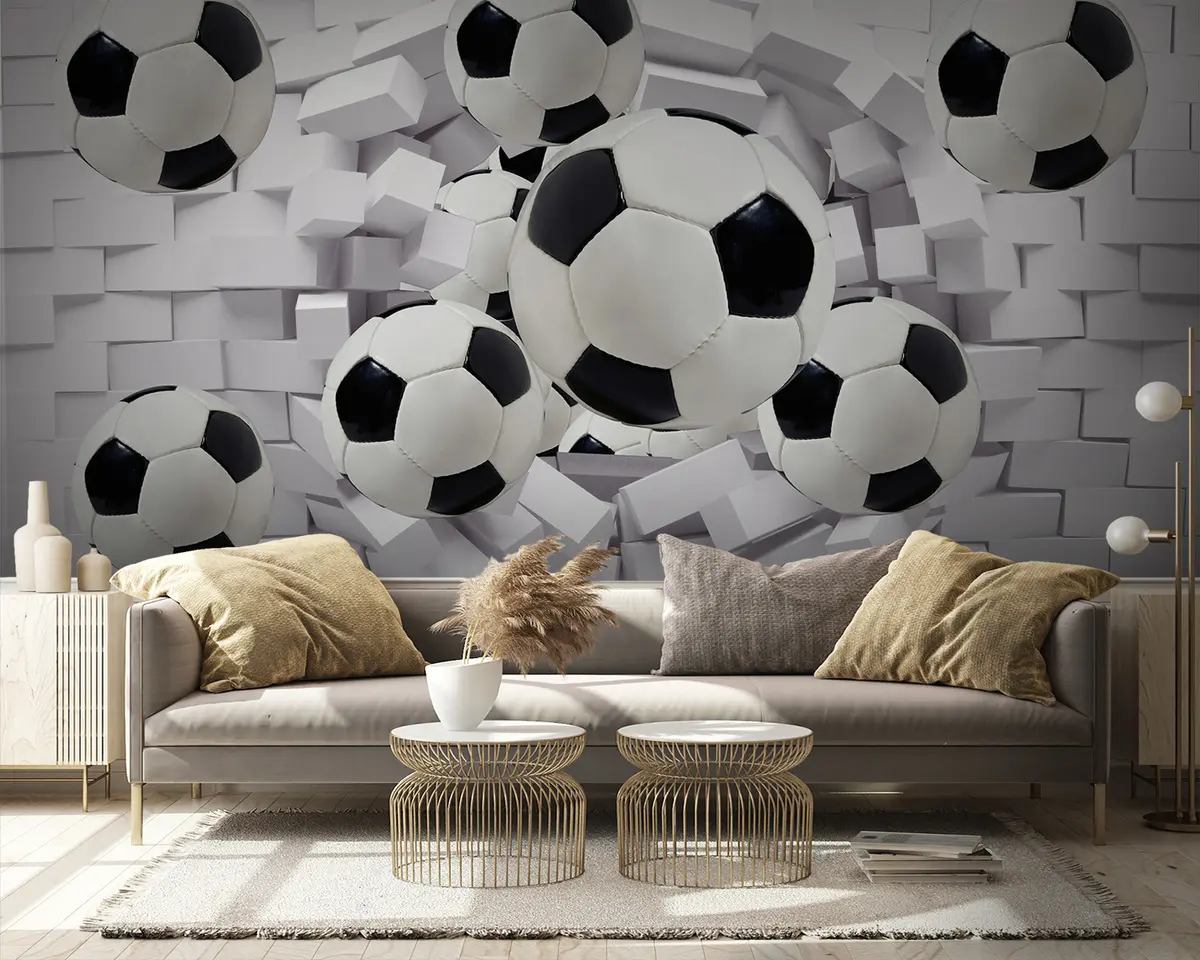 Stenske poslikave Nogometne žoge na ozadju opečnega zidu Št. u94958
