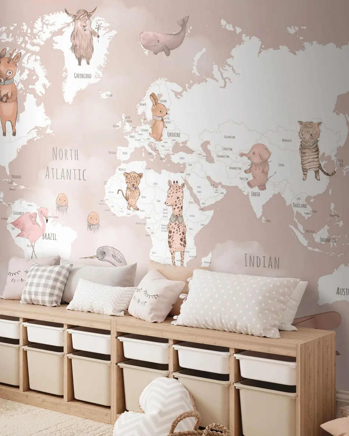 Stenske poslikave Otroški zemljevid rožnatega sveta Št. u74511