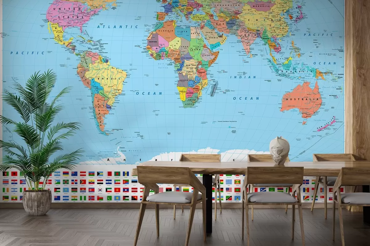 Stenske poslikave Zemljevid sveta z zastavami držav Št. u60137