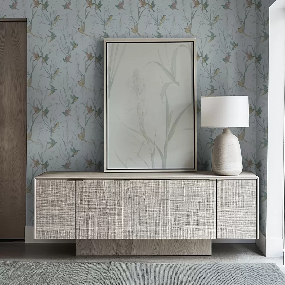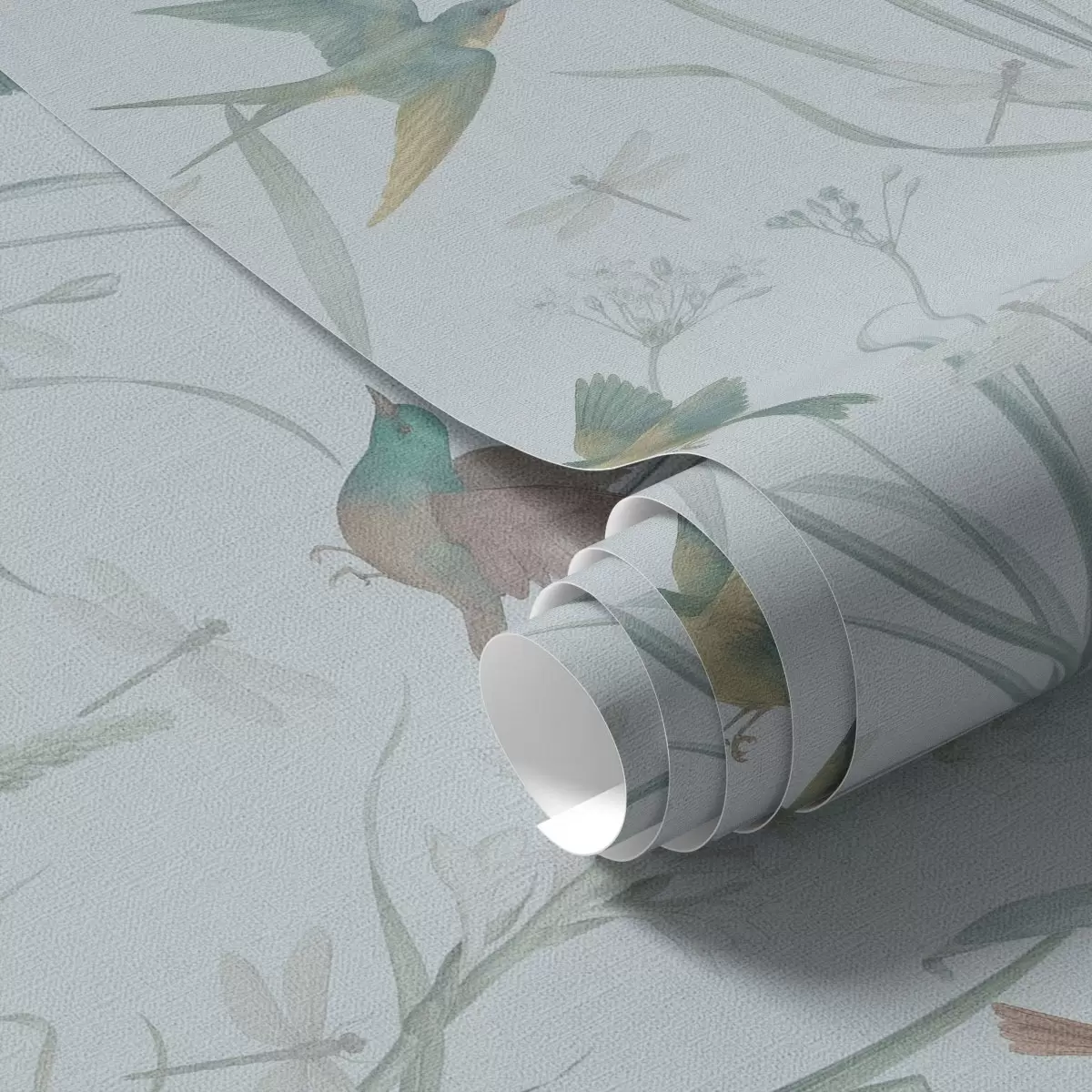 Tapeta Ptice med travami na sivomodri podlagi Št. a00776