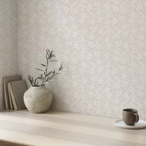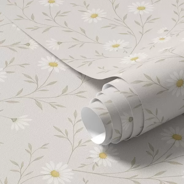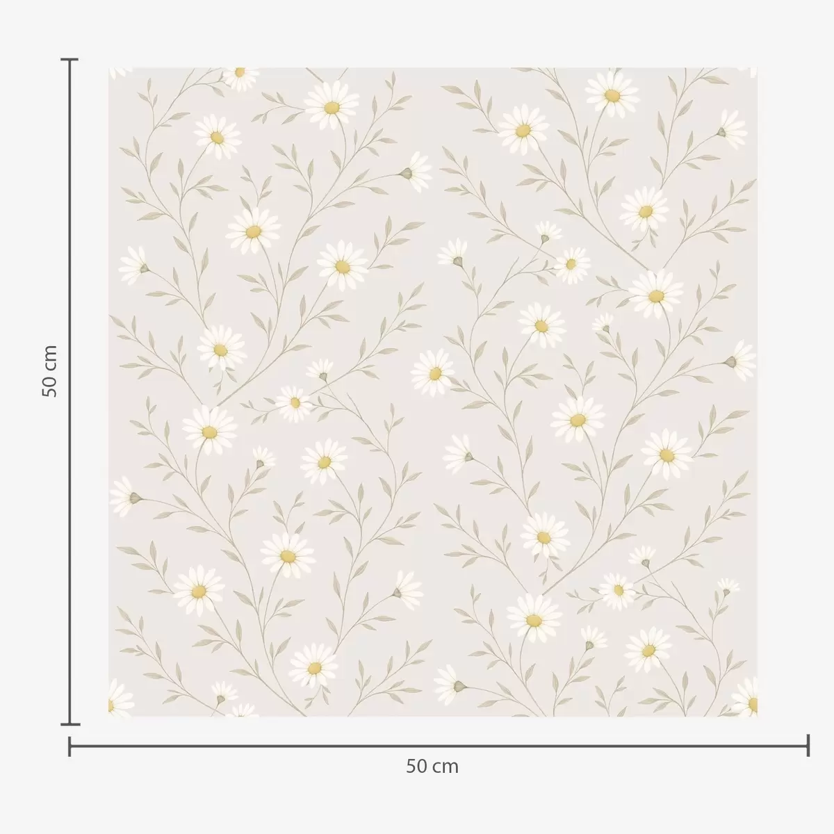 Tapeta Majhne marjetice na vejicah, topla bež barva Št. a00777