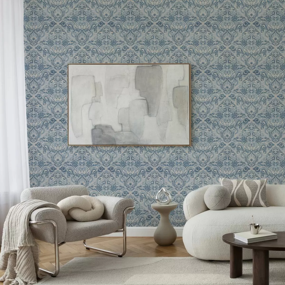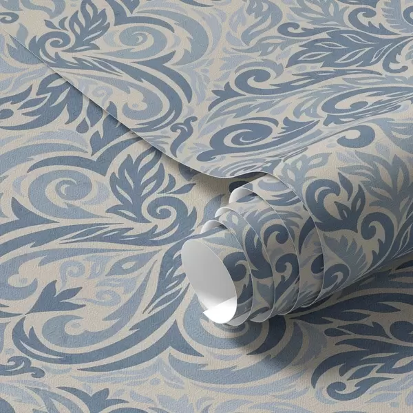 Tapeta Klasični damast, modri motivi na krem barvi Št. a00826v1