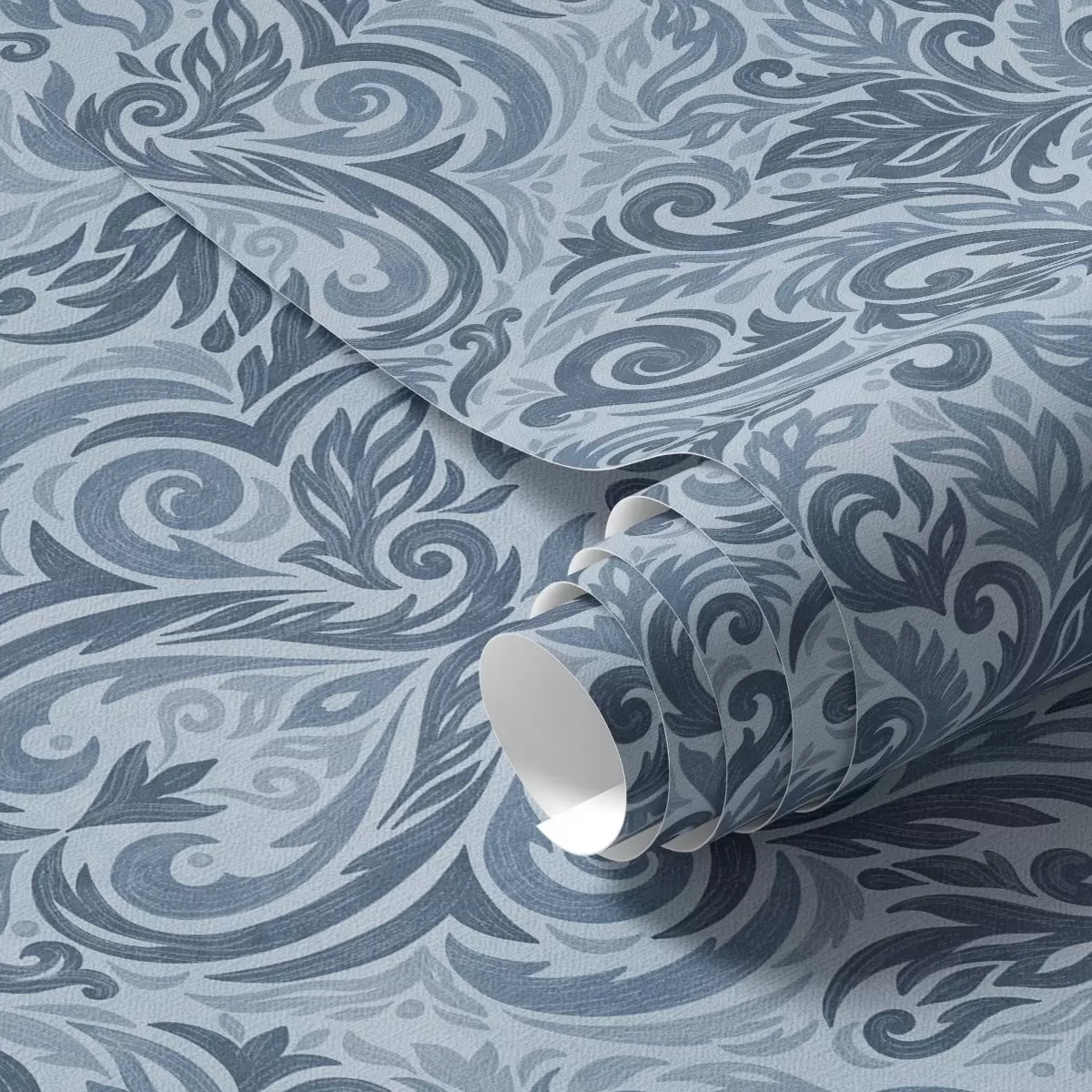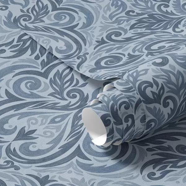 Tapeta Damask v hladnih modrih odtenkih, močnejši kontrast Št. a00826v2