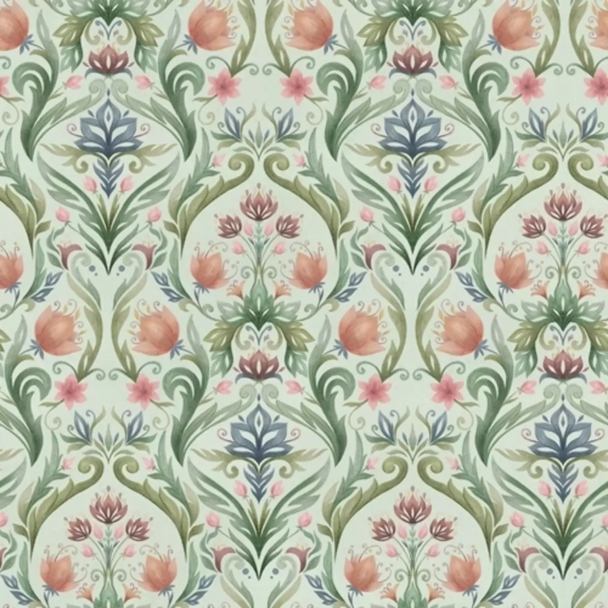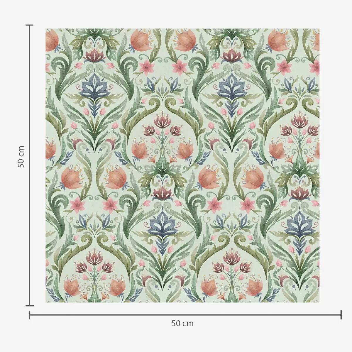 Stenske poslikave Simetrični cvetlični ornament, paleta mint-kreme Št. a00827v1