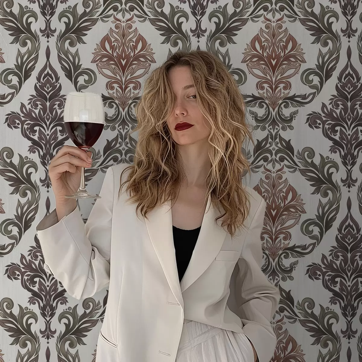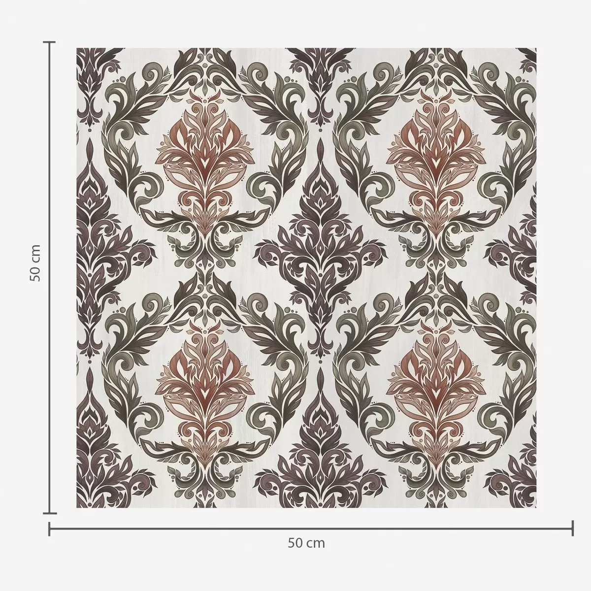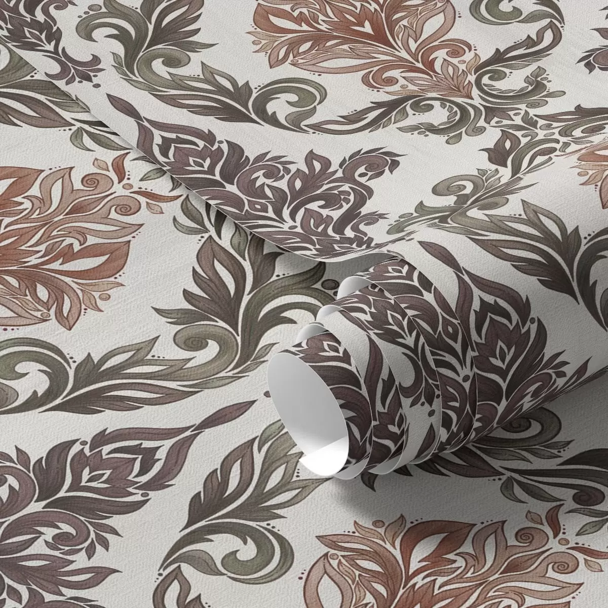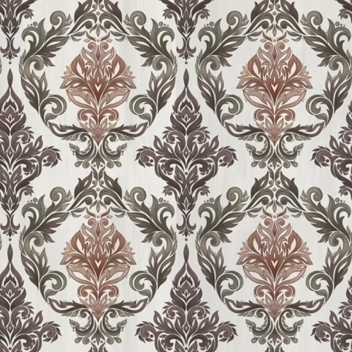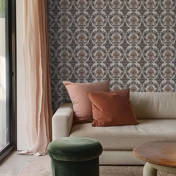 Stenske poslikave Damask z bakreno-rjavimi poudarki na svetlem ozadju Št. a00828v4