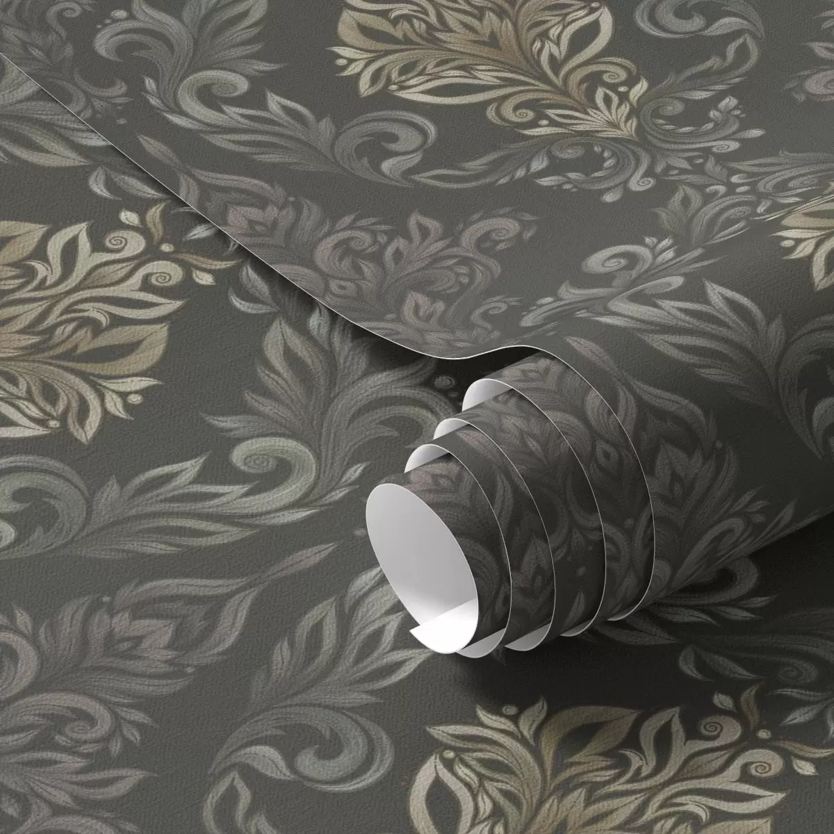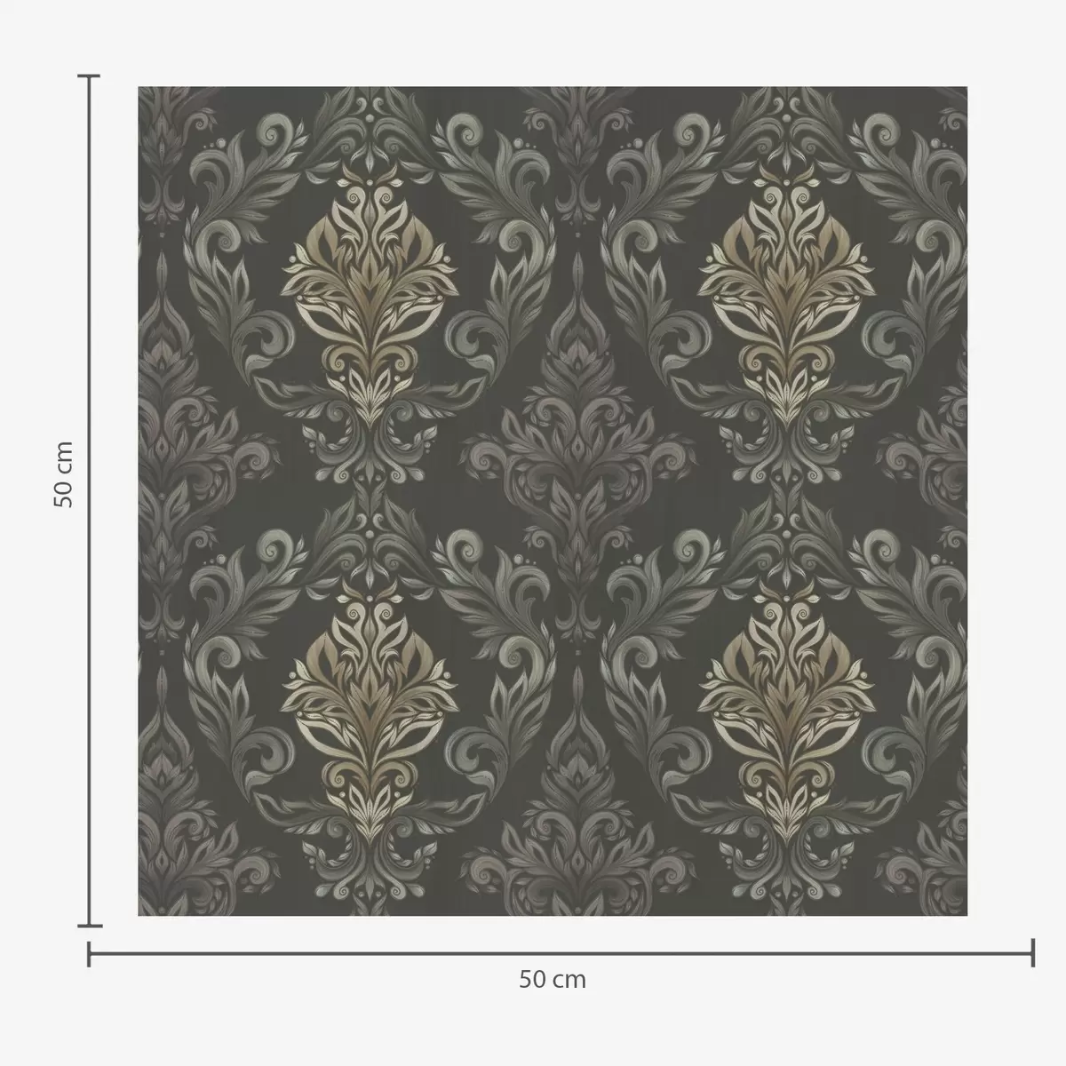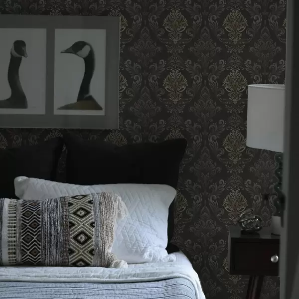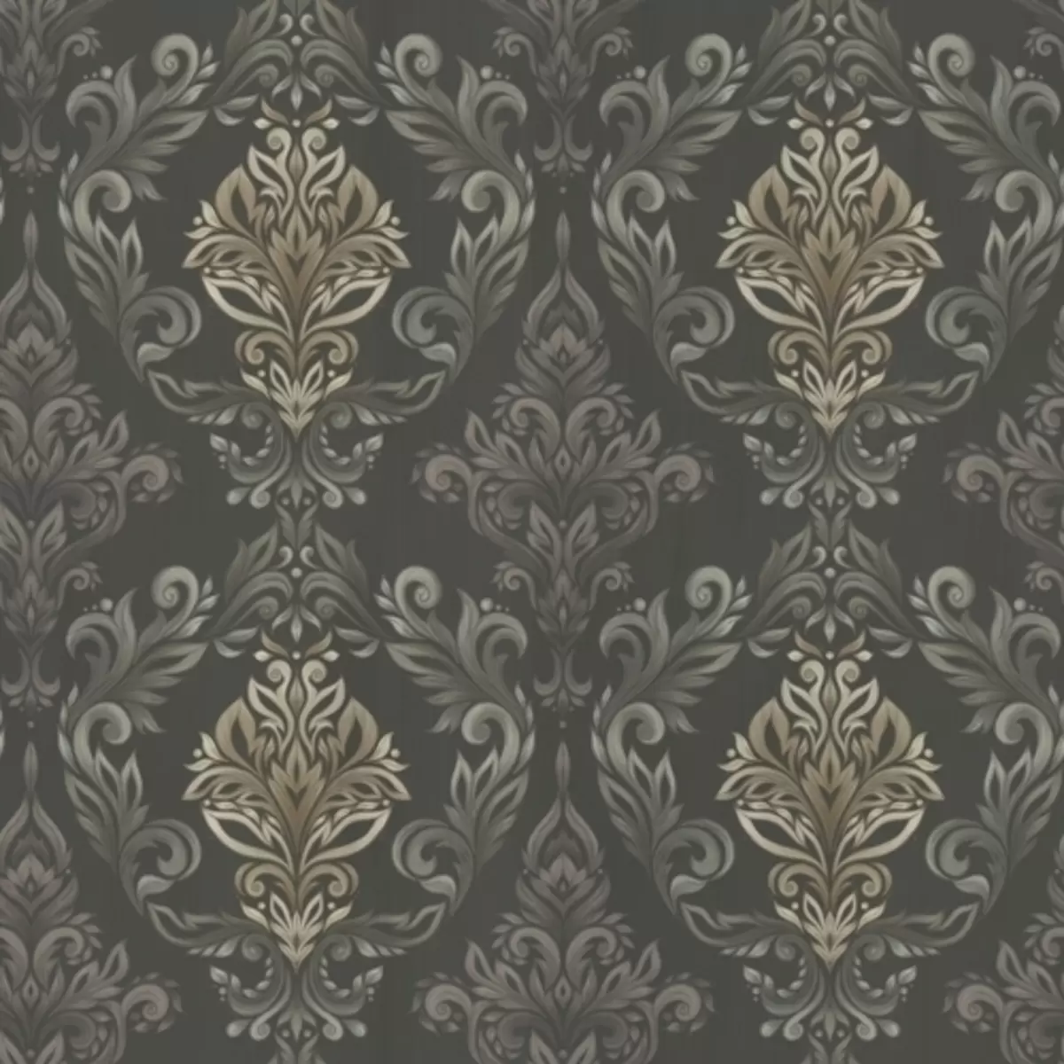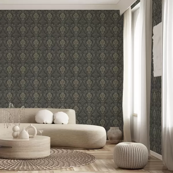 Stenske poslikave Damask na temnem grafitnem ozadju, olivno-okrasti poudarki Št. a00828v5