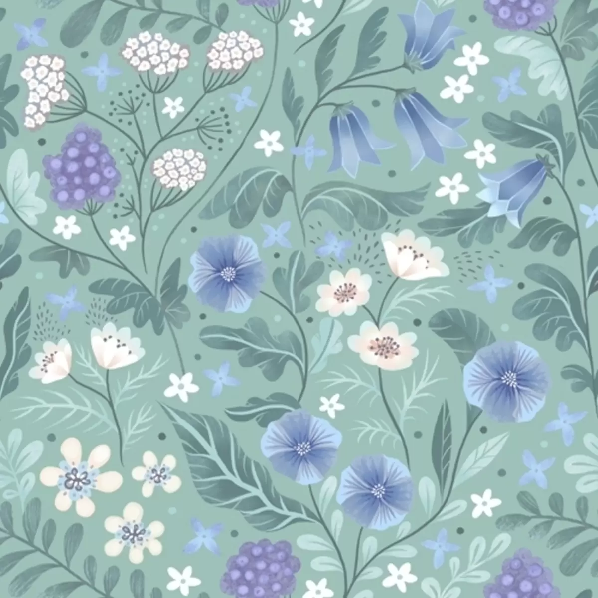 Stenske poslikave Divje rože in jagode na mehkem mintovem ozadju Št. a00849