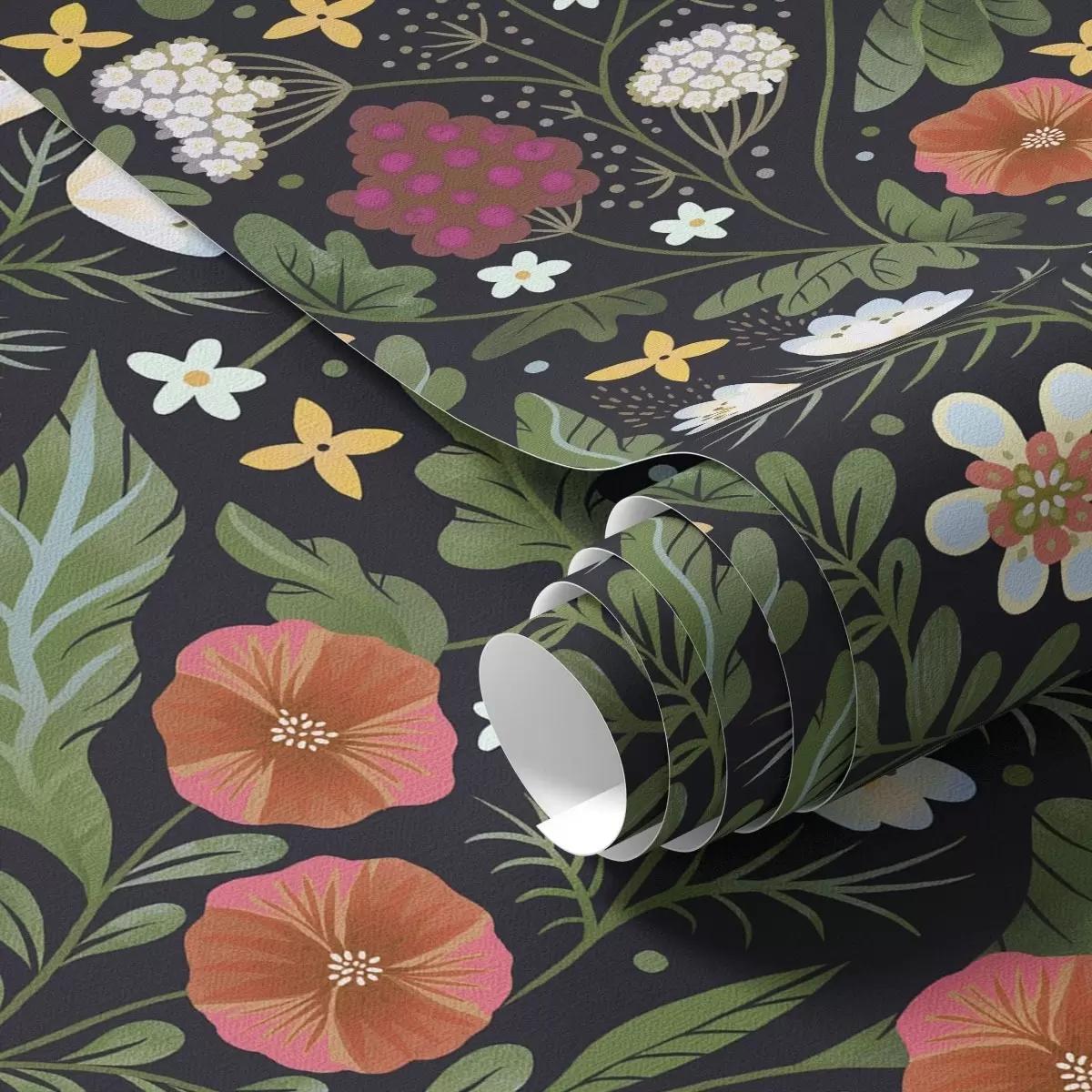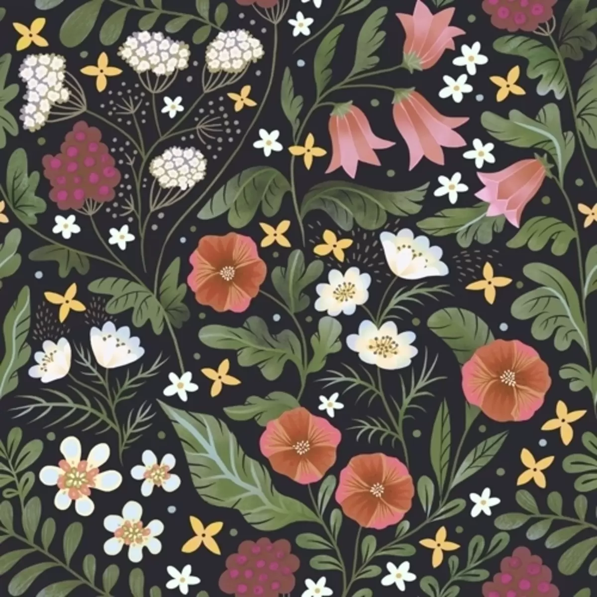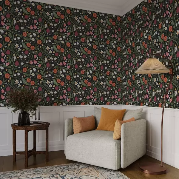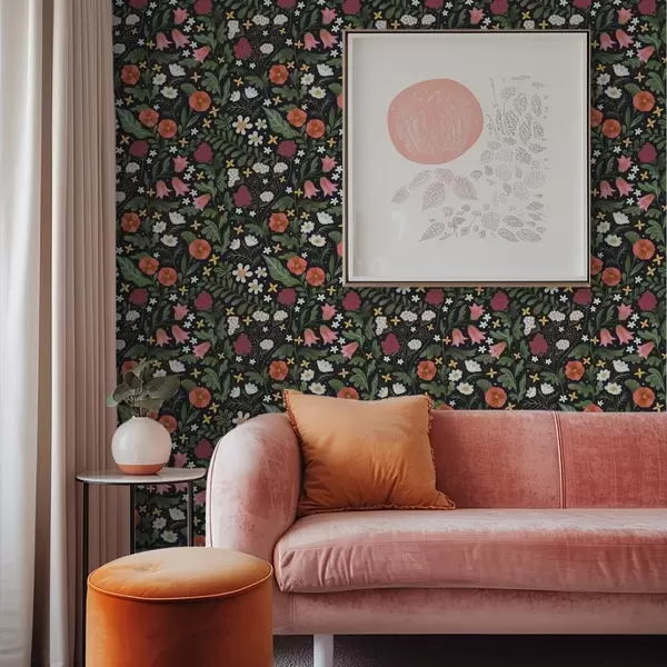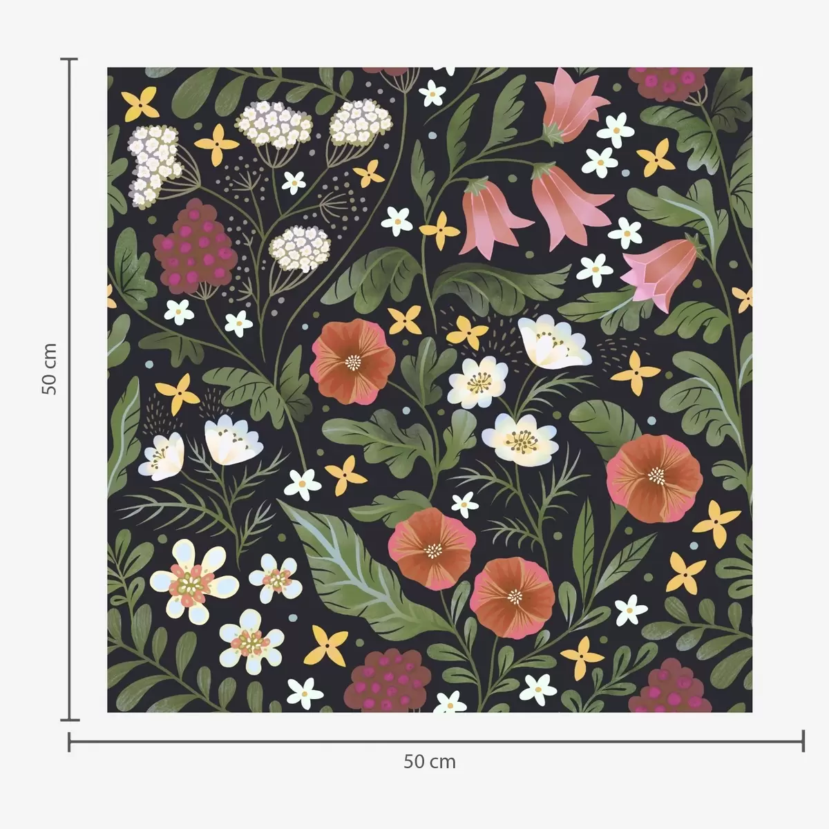Stenske poslikave Divje rože in jagode na temno črnem ozadju Št. a00849v3