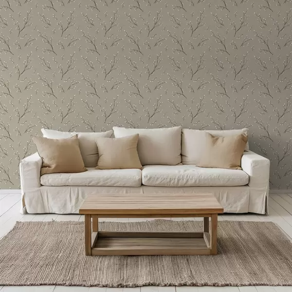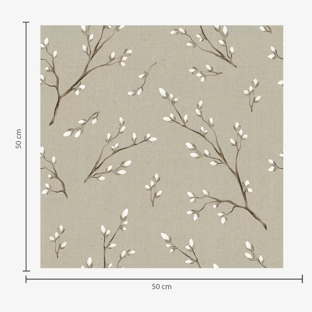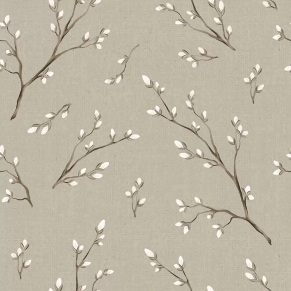 Stenske poslikave Vejice z belimi popki na platnenem sivo-rjavem ozadju Št. a00861
