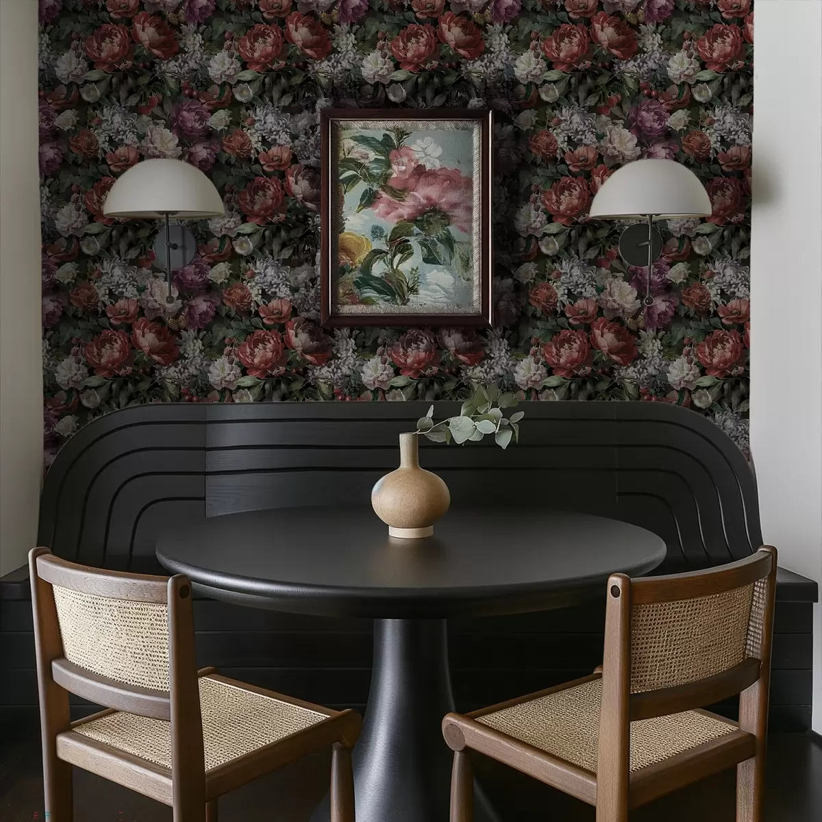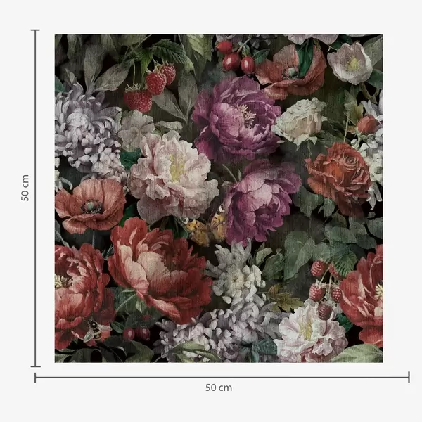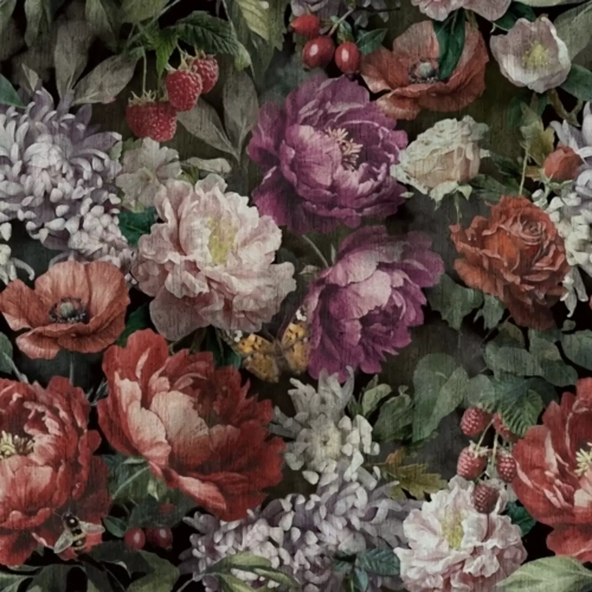 Stenske poslikave Temne dramatične potonike, jagode in metulj na črnem ozadju Št. a00862