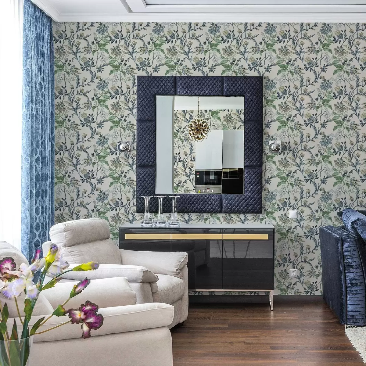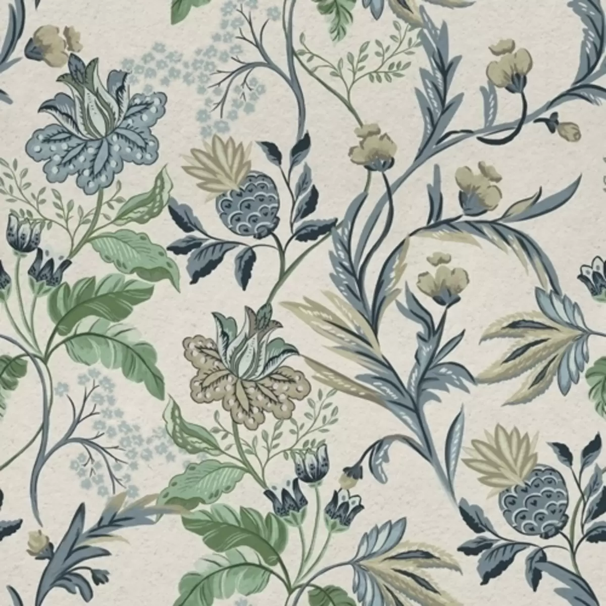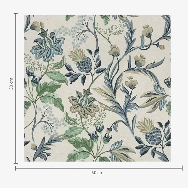 Stenske poslikave Modro-zeleni ljudski cvetovi in listi na kremni podlagi Št. a00863