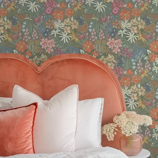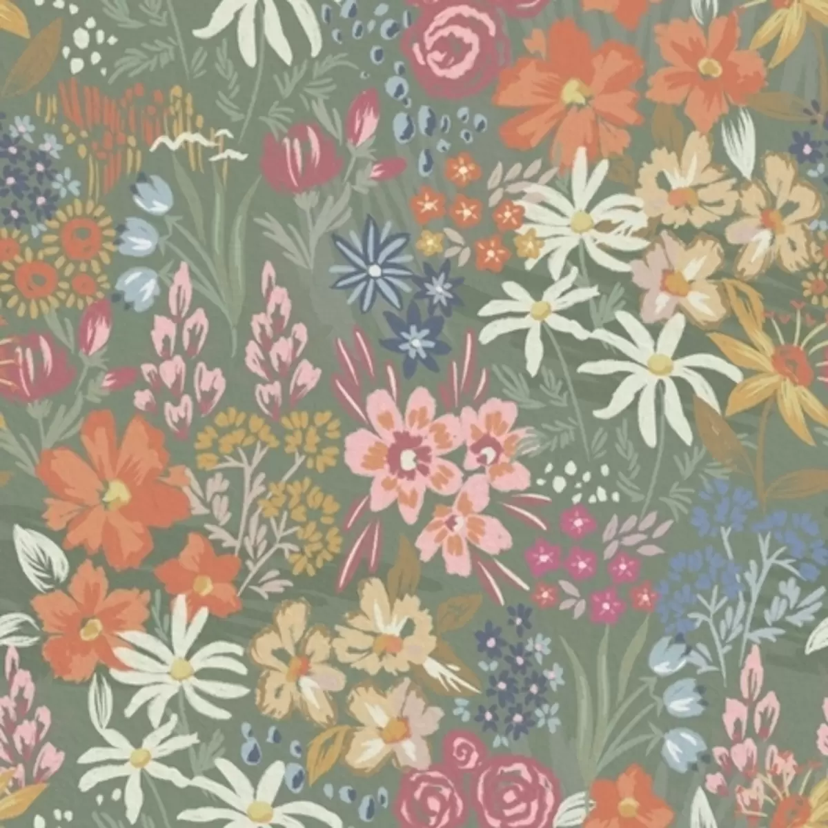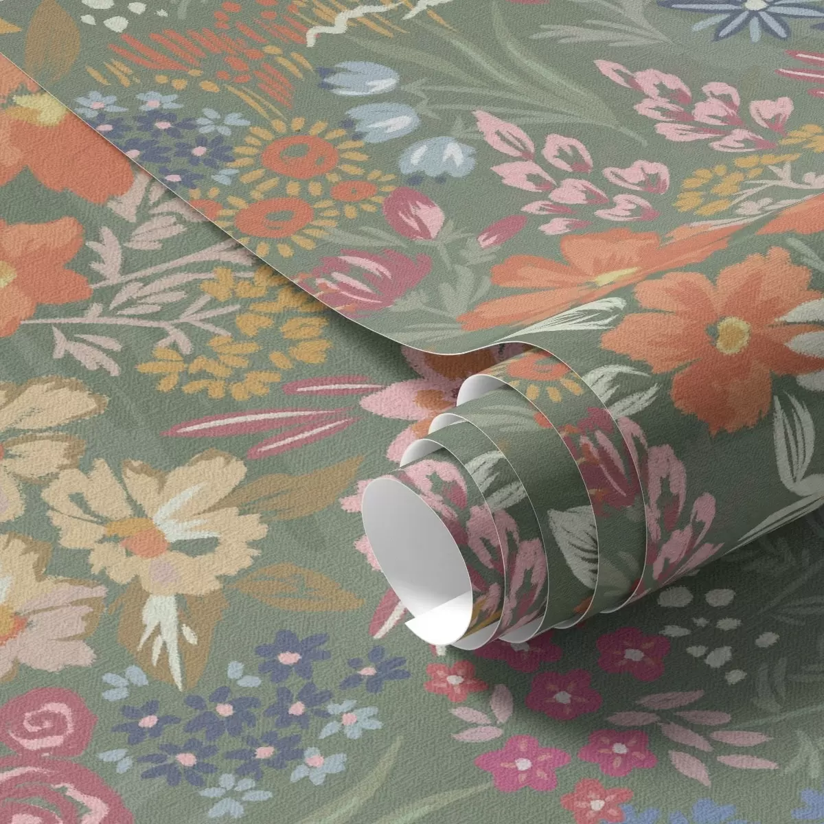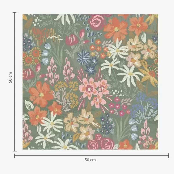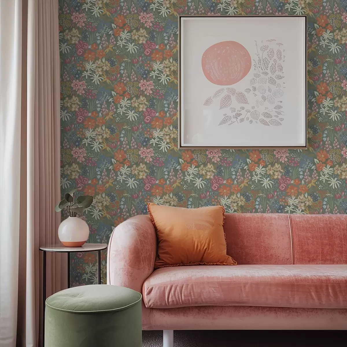 Stenske poslikave Slikoviti travniški cvetovi na sivkastozeleni podlagi Št. a00864