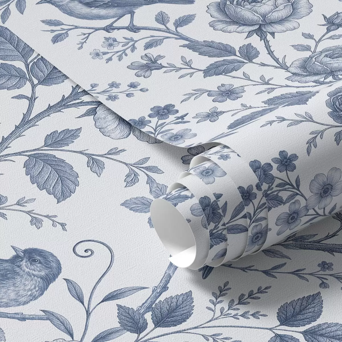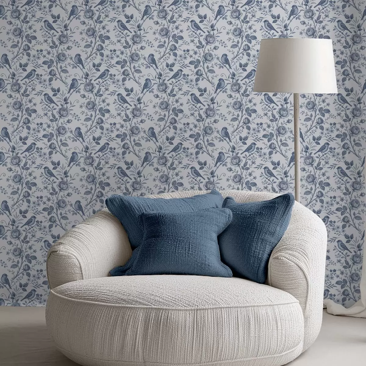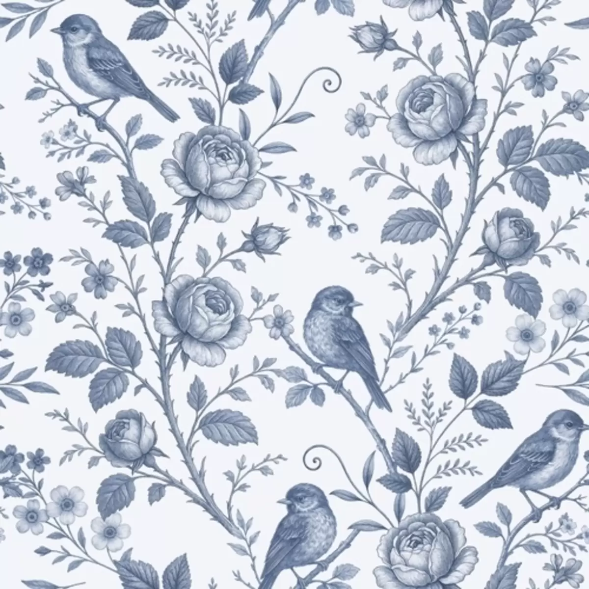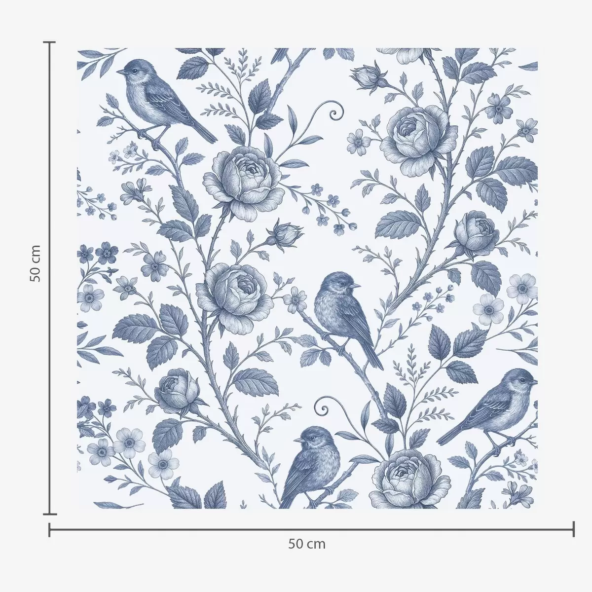 Stenske poslikave Modre ptice in vrtnice na beli podlagi Št. a00873