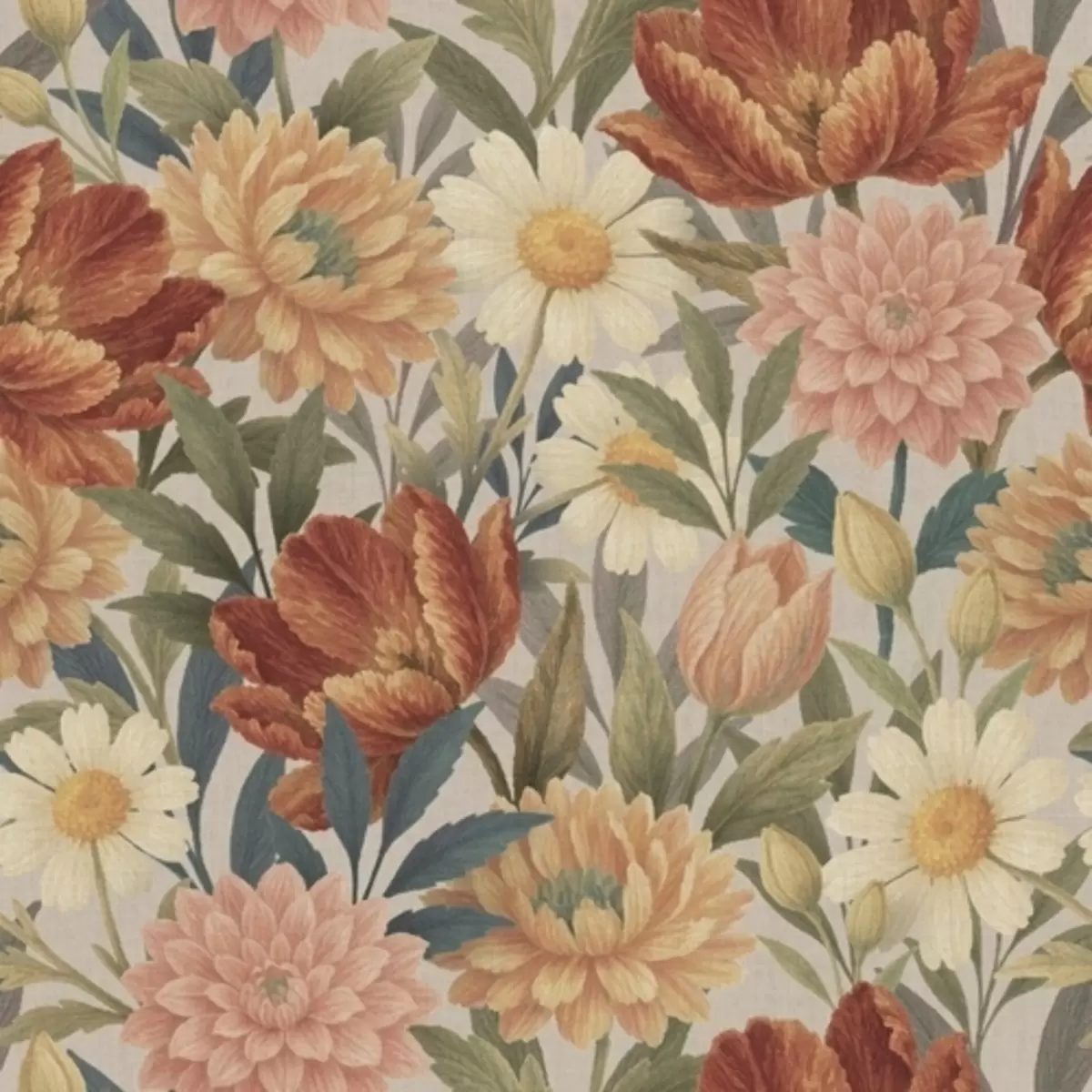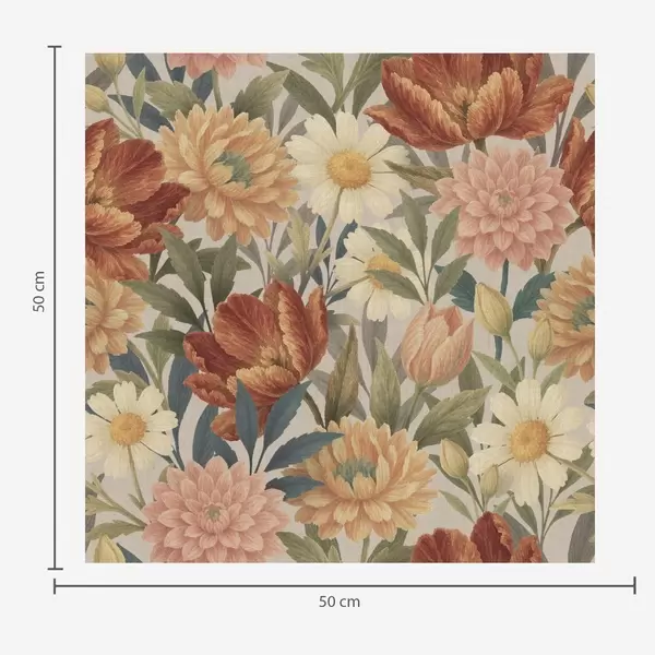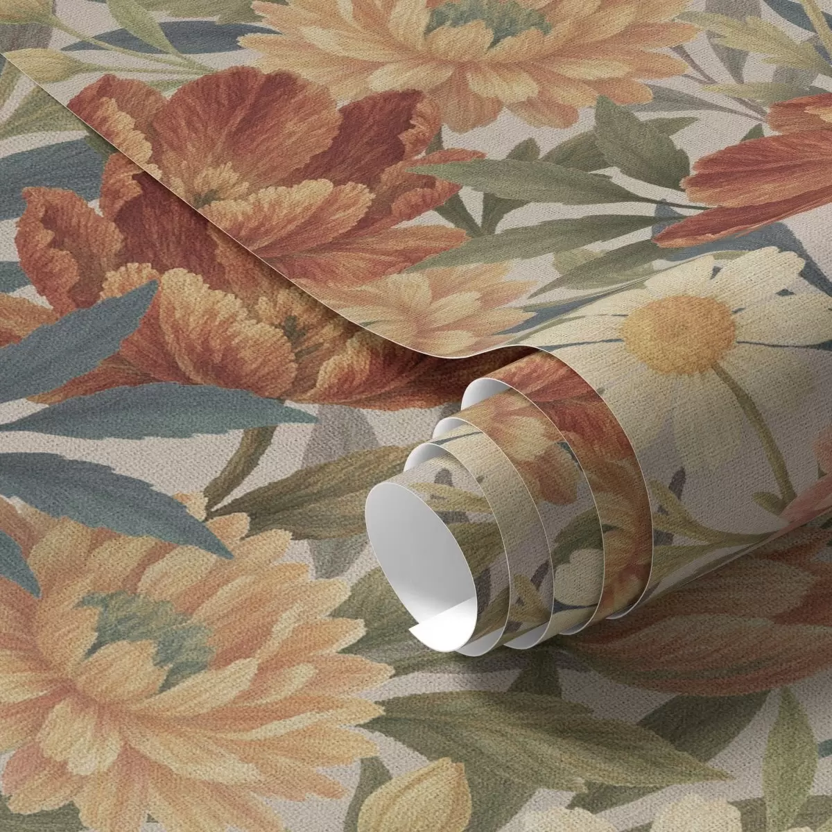 Stenske poslikave Vintage vrt cveti v toplih odtenkih terakote in breskve Št. a00874