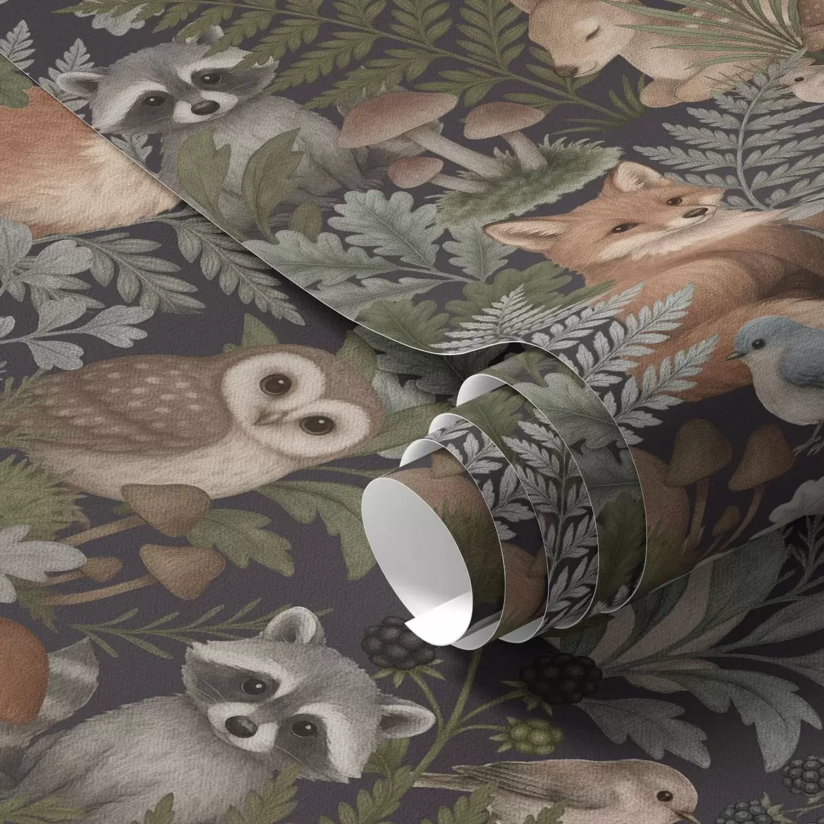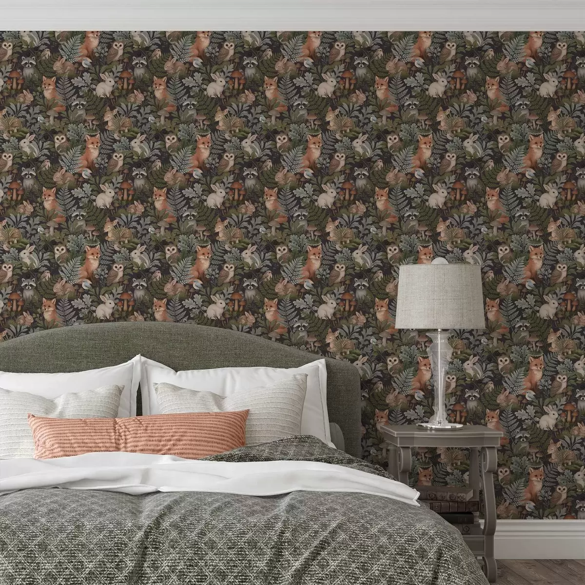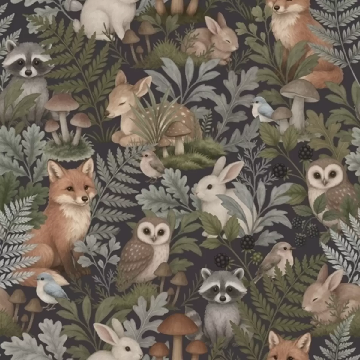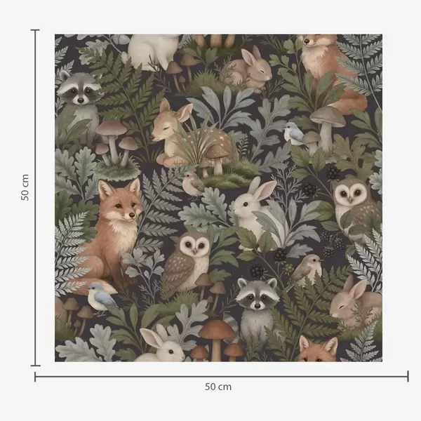 Stenske poslikave Gozdne živali in praproti na temnem oglju Št. a00880