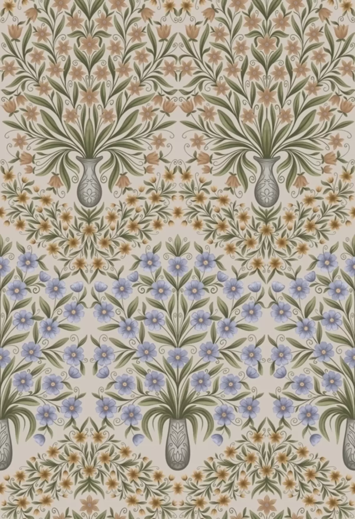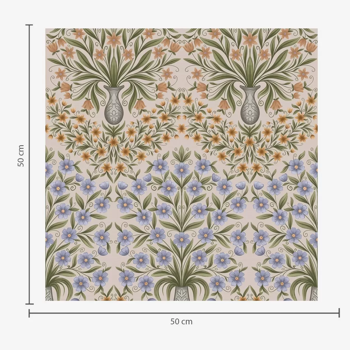Stenske poslikave Ljudske vaze z modrimi cvetovi in oljčnimi listi na rožnati podlagi Št. a00900