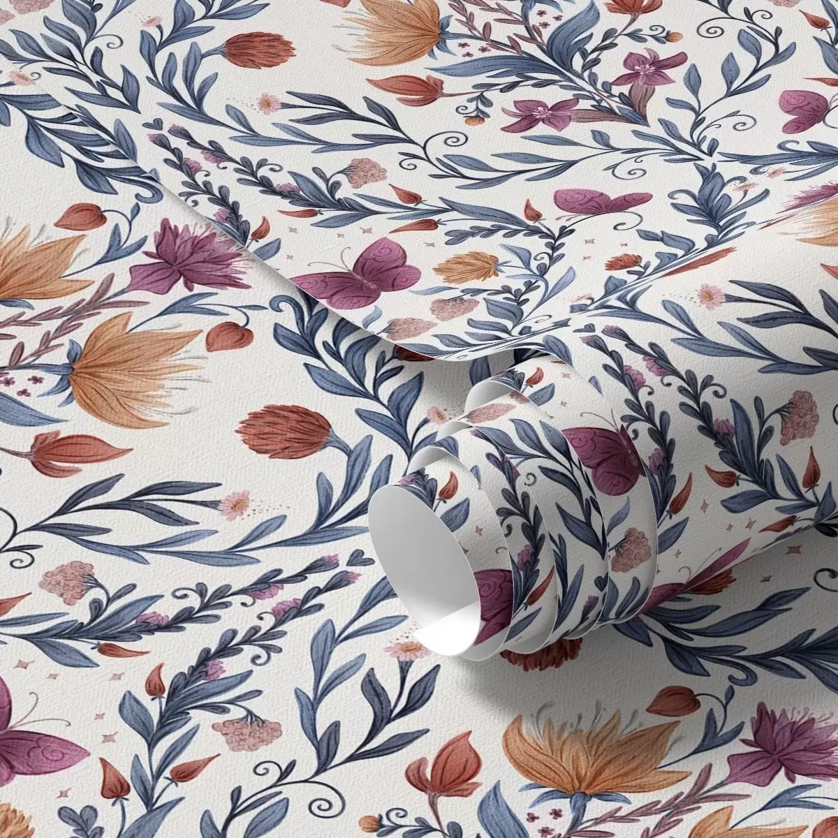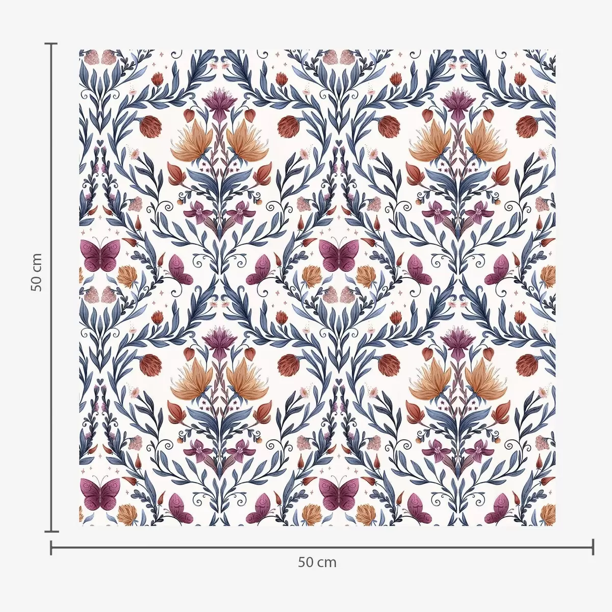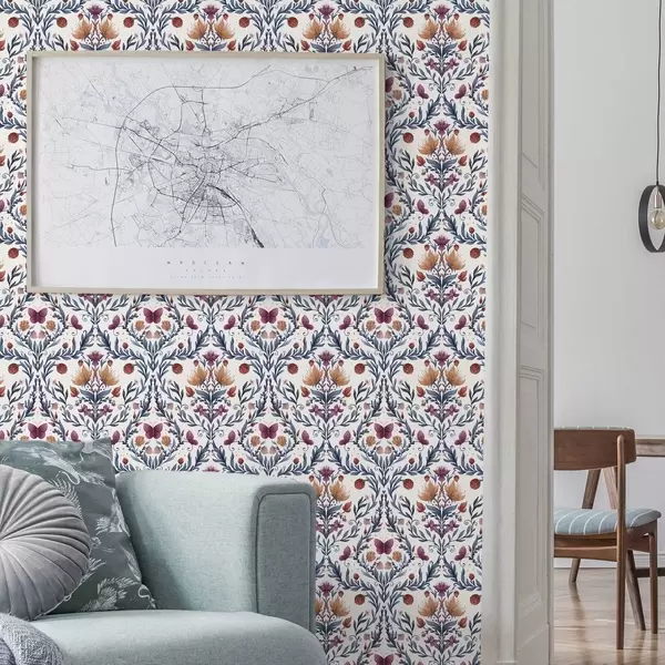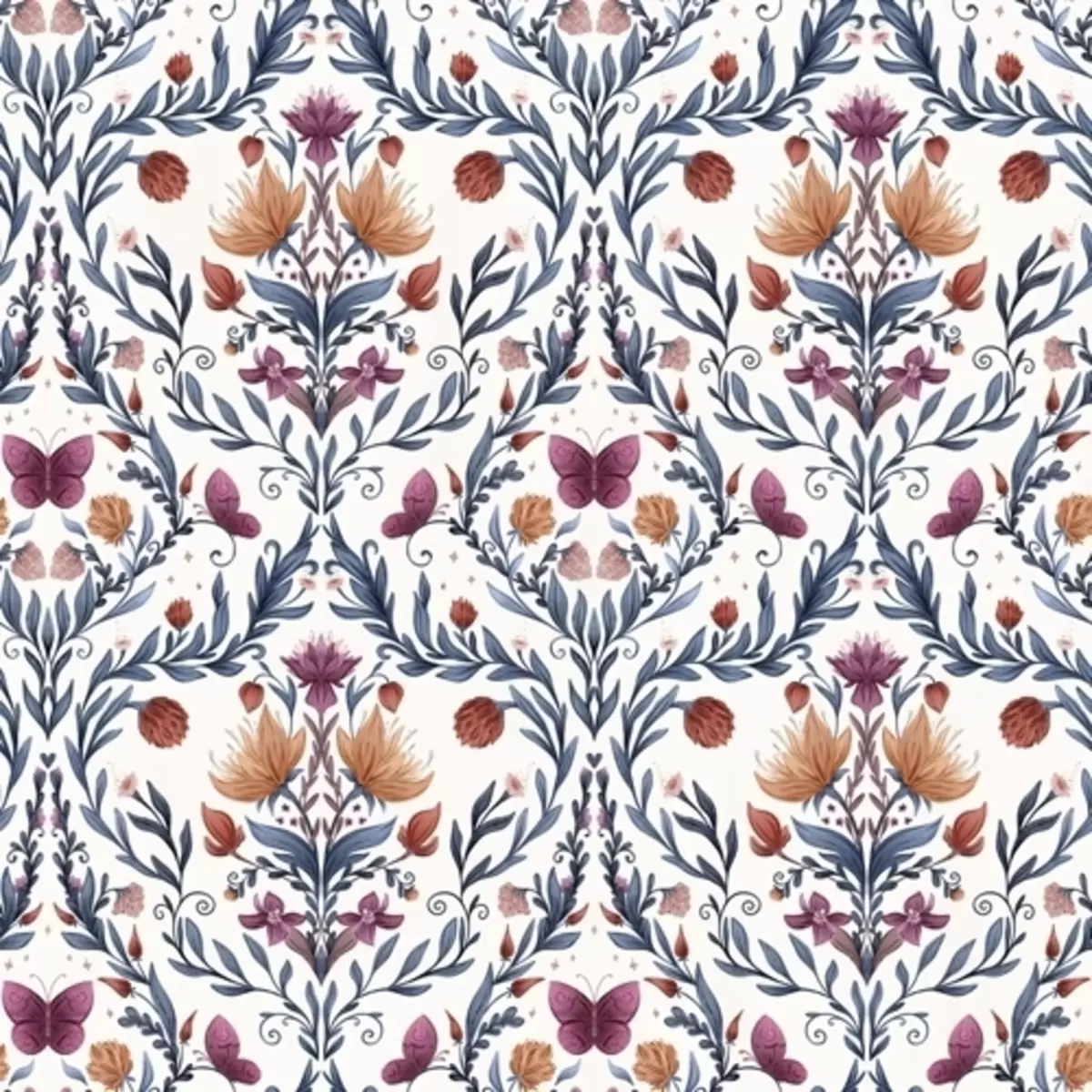 Stenske poslikave Cvetlični damast z metulji na topli krem barvi Št. a00926v2