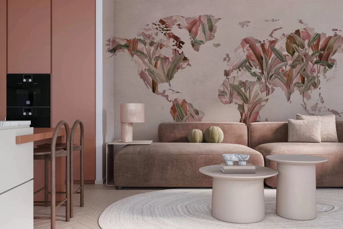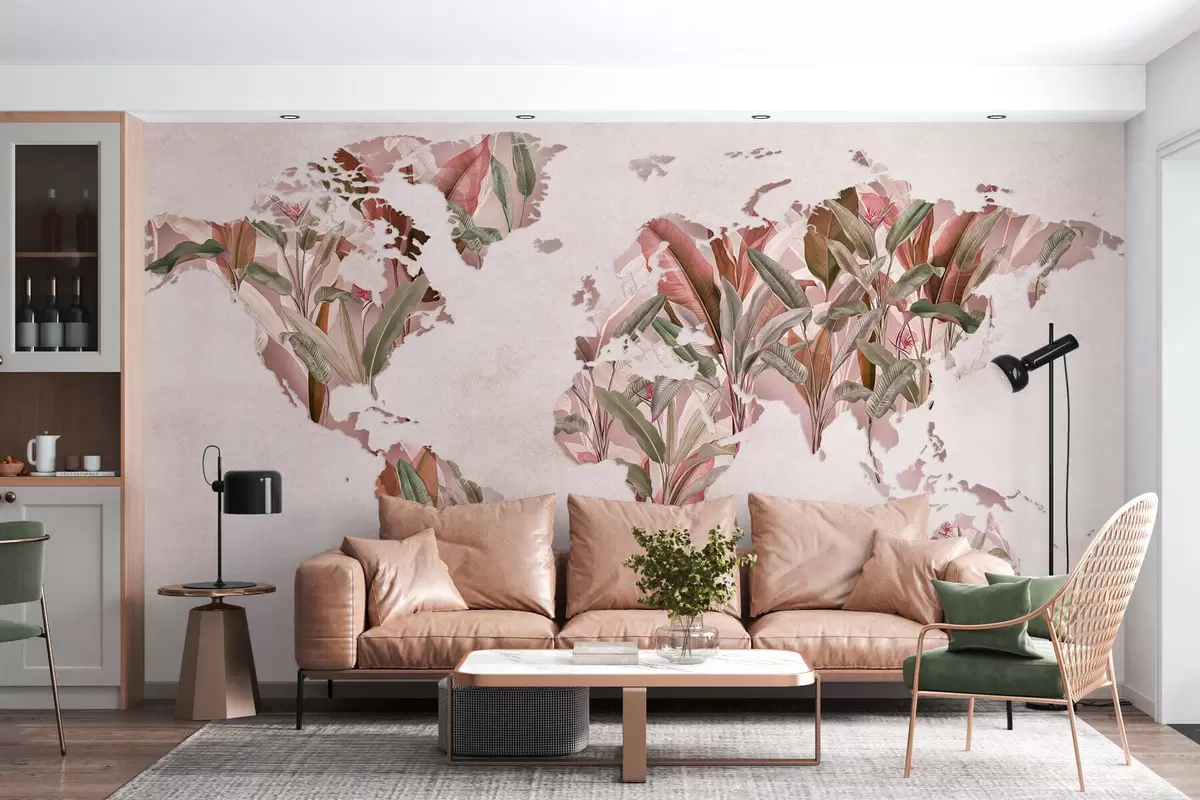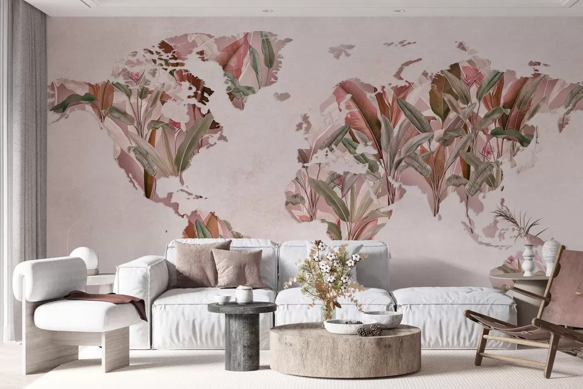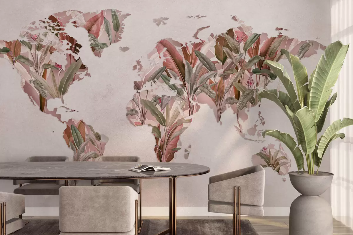 Stenske poslikave Roza zemljevid sveta, narejen iz bananinih listov Št. c00007v2