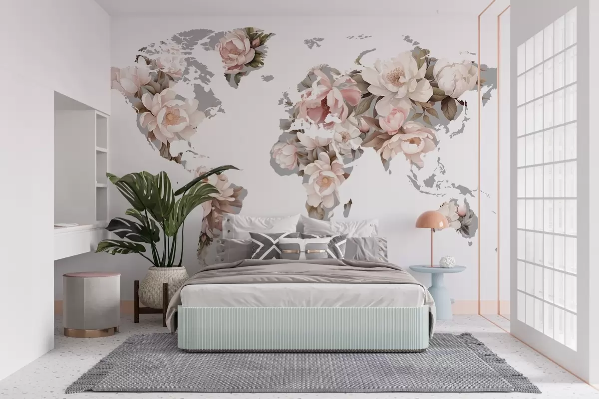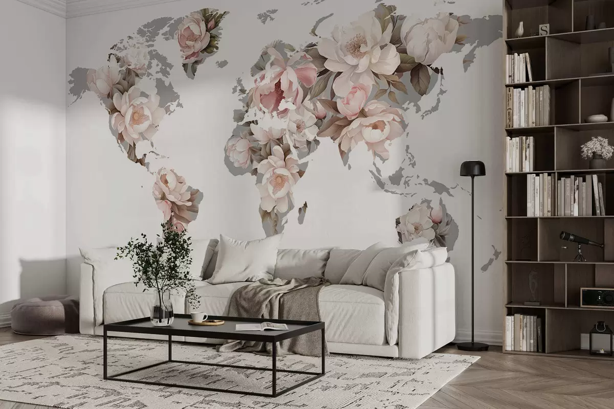 Stenske poslikave Nežna, kremasta zemljevid sveta iz cvetja Št. c00008