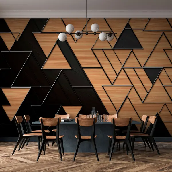 Stenske poslikave 3D temno sivi in leseni trikotniki z reliefnimi linijami Št. u75167