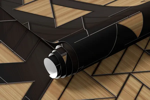Stenske poslikave 3D temno sivi in leseni trikotniki z reliefnimi linijami Št. u75167