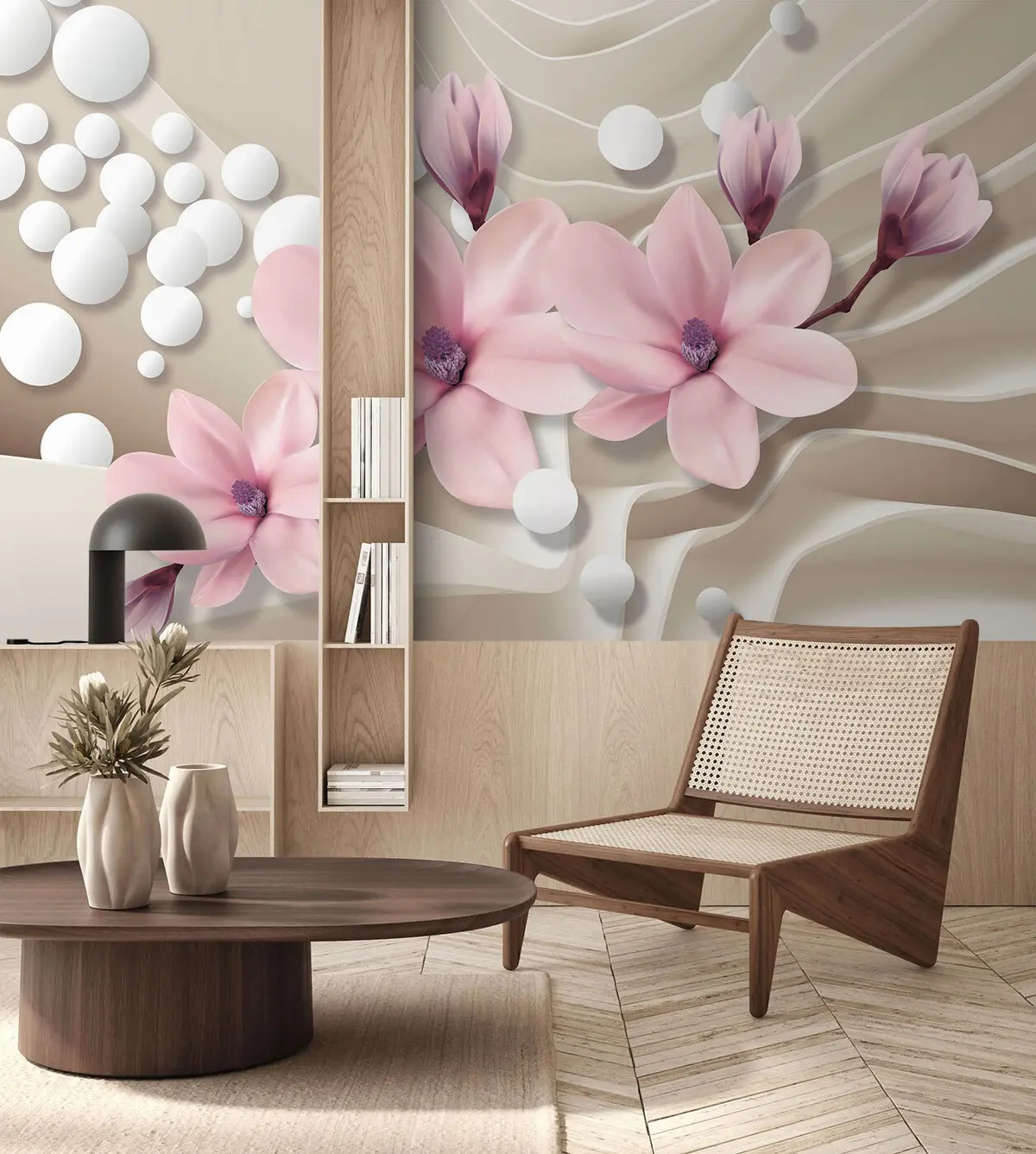 Stenske poslikave Magnolije na abstraktnem ozadju Št. u93530