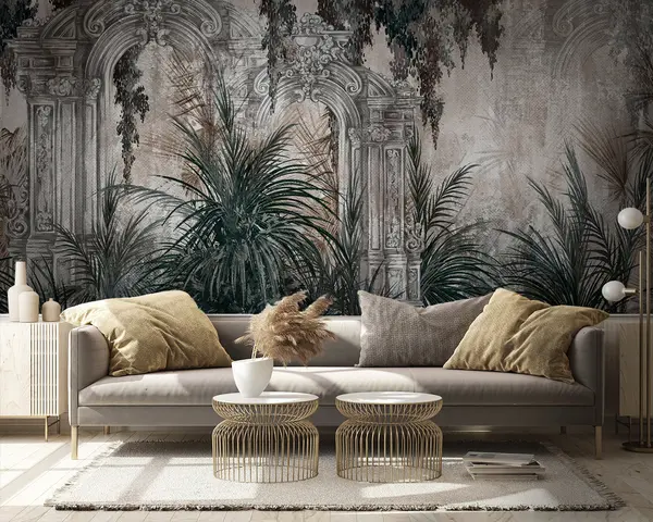Stenske poslikave Starodavna arhitektura s tropskimi listi Št. u95500