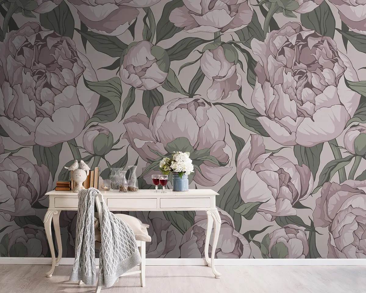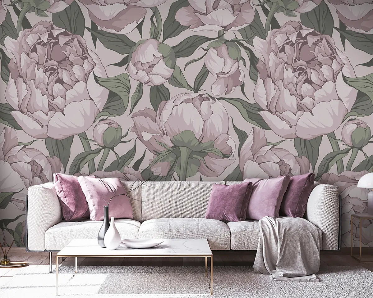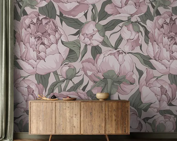 Stenske poslikave Cvetoče peonije v pastelnih barvah Št. u95849
