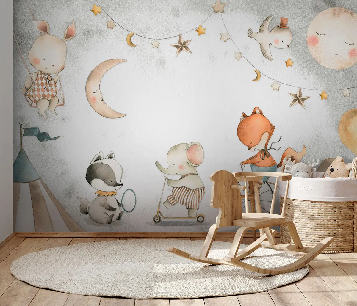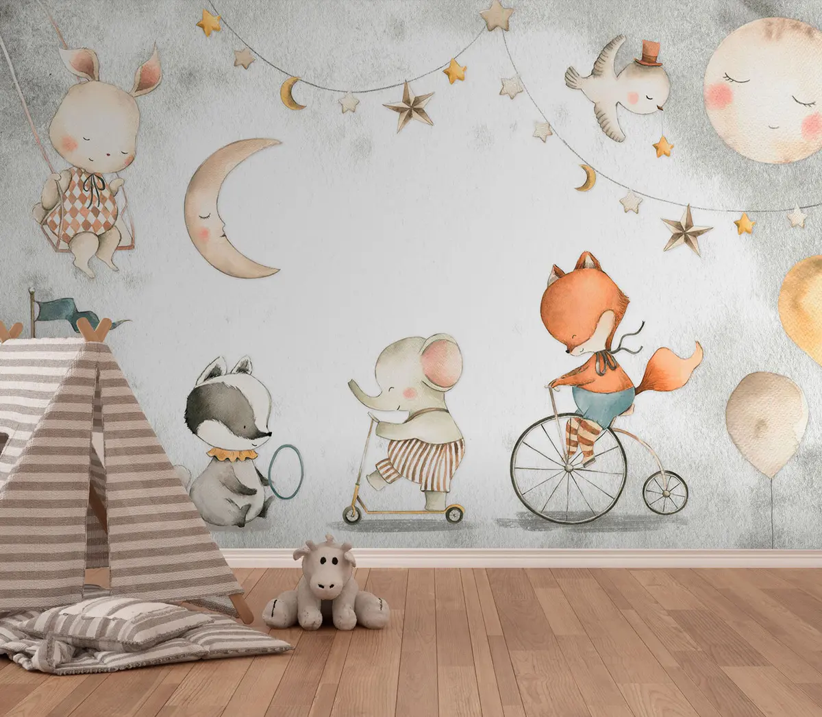 Stenske poslikave Gozdne živali slon, lisica, jazbec in zajec Št. u96075