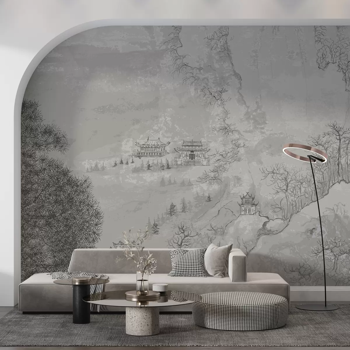 Stenske poslikave Ilustracija kitajske pokrajine v slogu starega kitajskega slikarstva Št. u98699