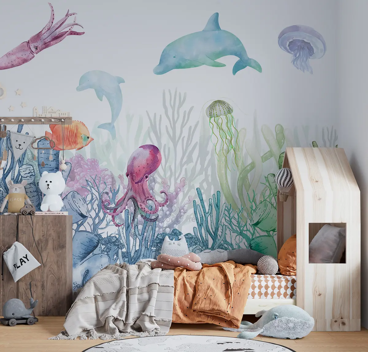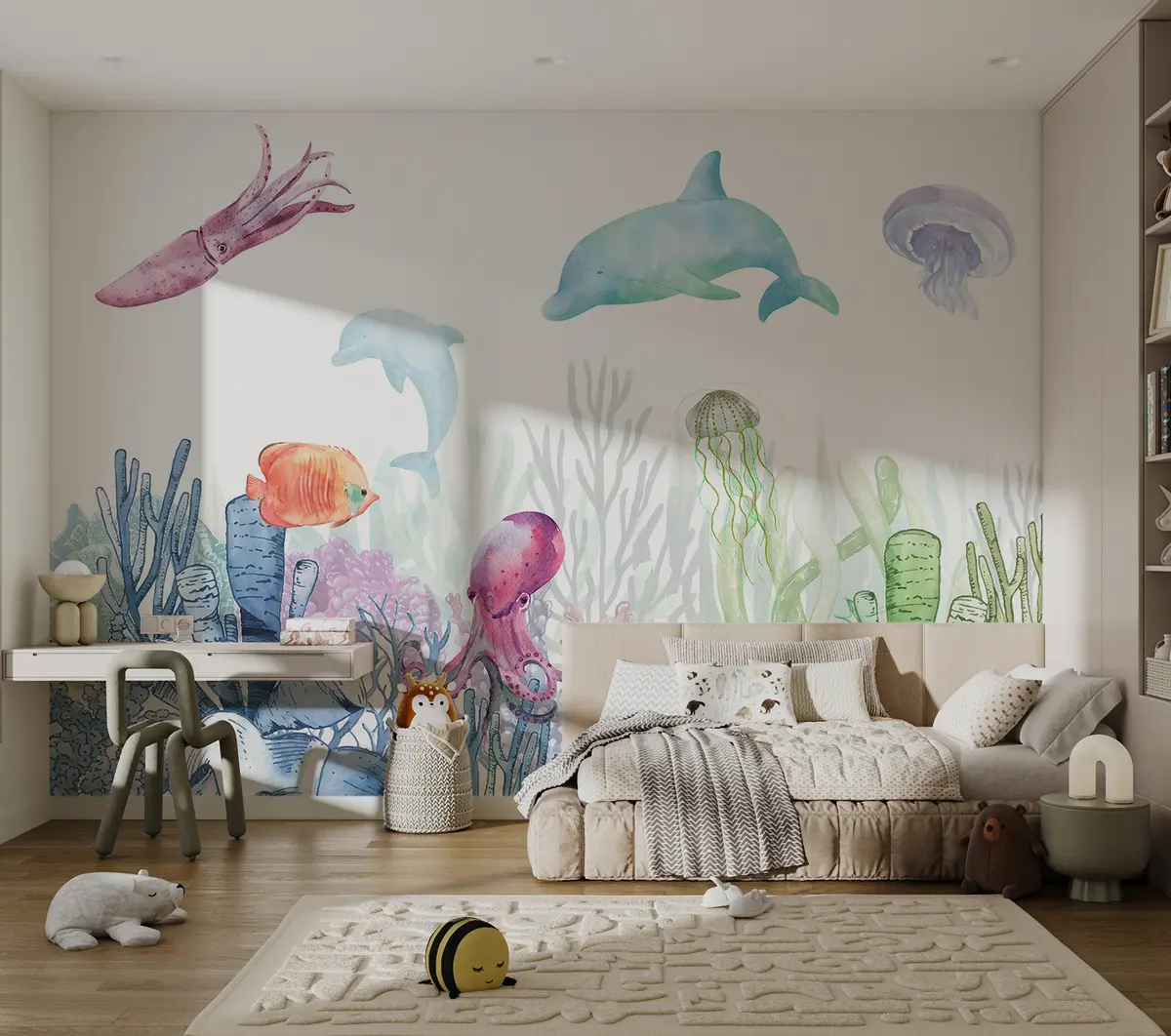 Stenske poslikave Podvodno morsko življenje, morske živali, akvarel, korale, delfin, hobotnica Št. u98899