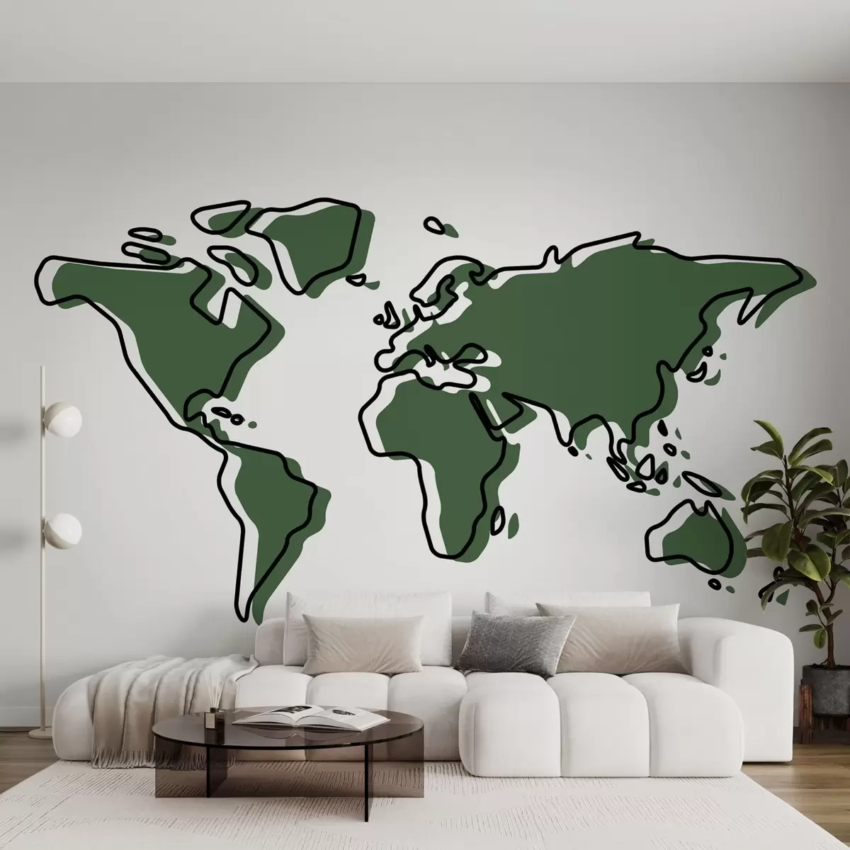 Stenske poslikave Poenostavljena ilustracija zemljevida sveta v zeleni barvi Št. u99073v2