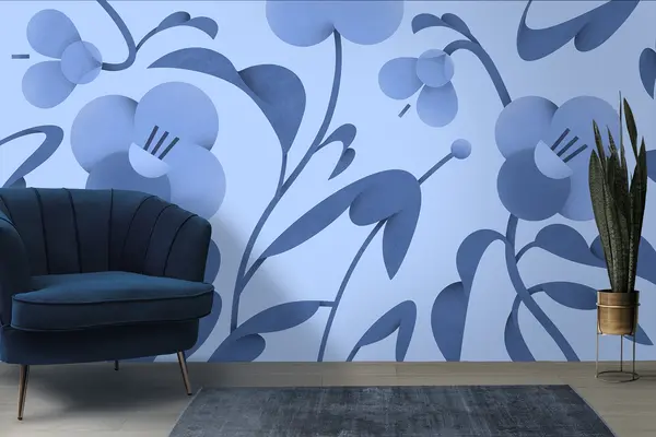 Stenske poslikave Botanični tisk z okrasnimi cvetovi v modri barvi Št. u99196v8