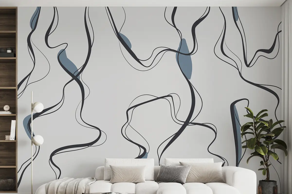 Stenske poslikave Risba s tušem, abstraktni vzorec, geometrijske črte, siva in modra Št. u99659