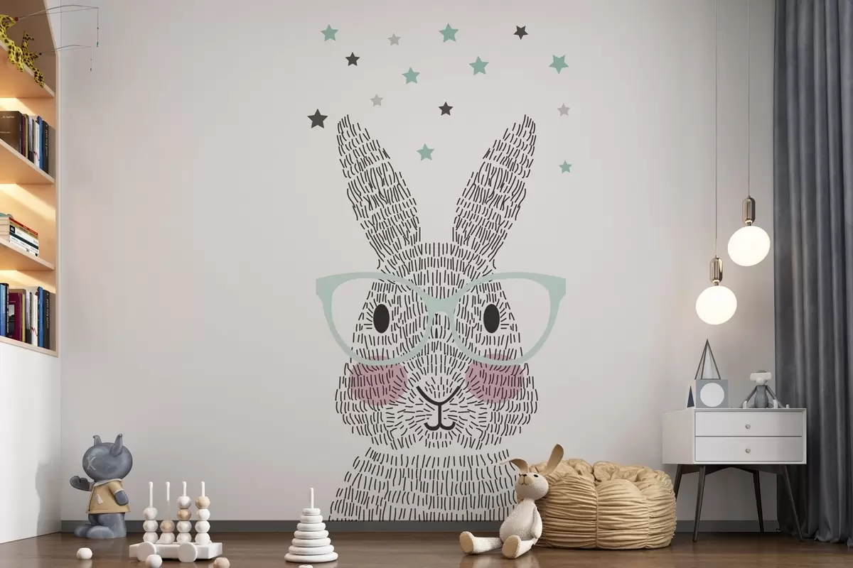 Stenske poslikave Pametni zajček z elegantnimi očali Št. w00159
