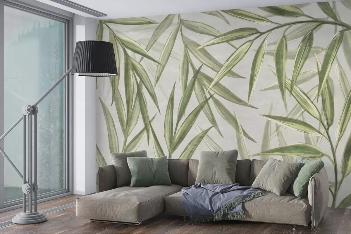 Stenske poslikave Bujni listi v nežnih akvarelnih tonih Št. w00236