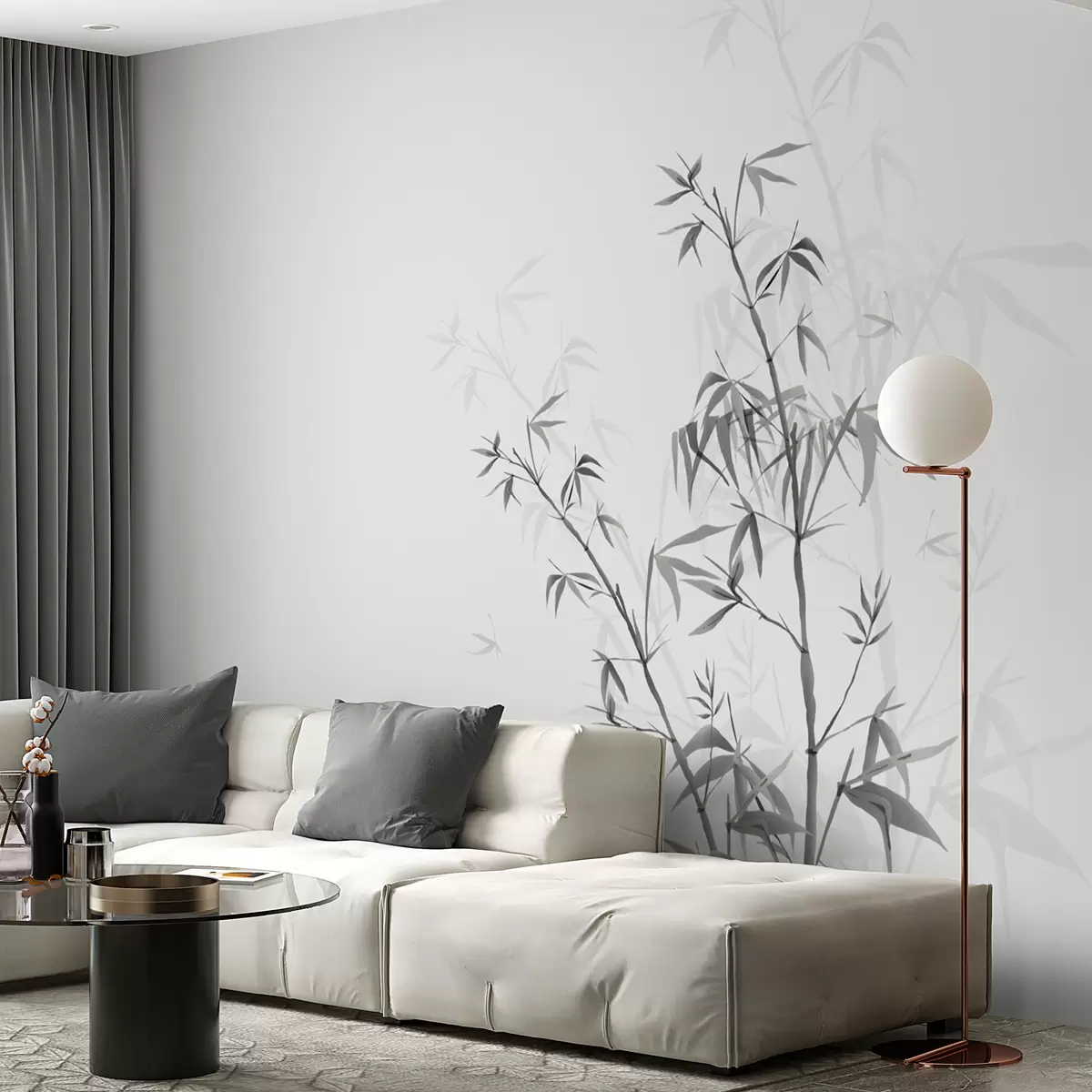 Stenske poslikave Minimalistični slog Japandi rastlina bambus Chinoiserie sive barve Št. w00546v1