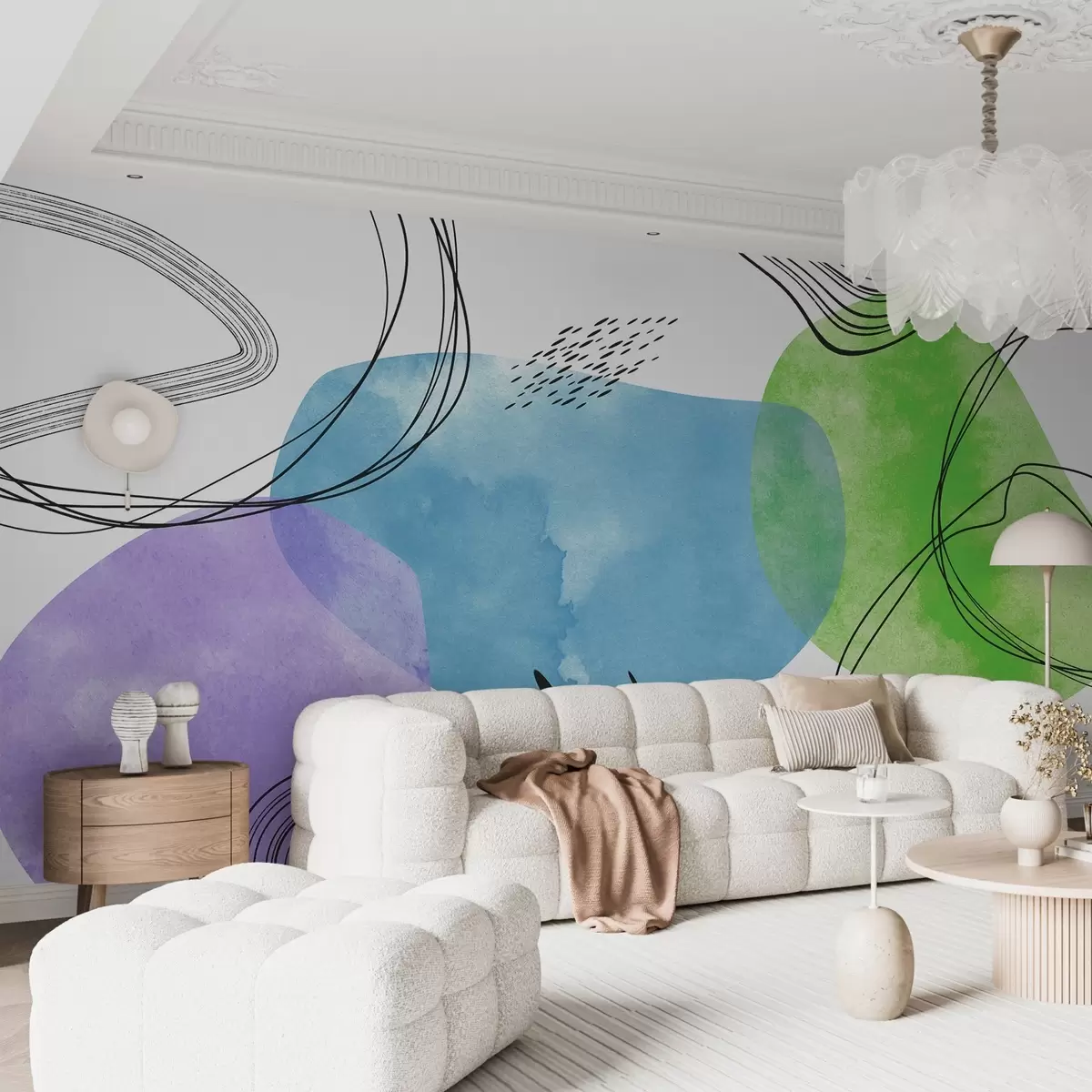 Stenske poslikave Barvite abstraktne oblike v harmoniji Št. w00584