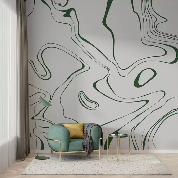 Stenske poslikave Tekoče linije v zeleni in beli barvi Št. w00634v3